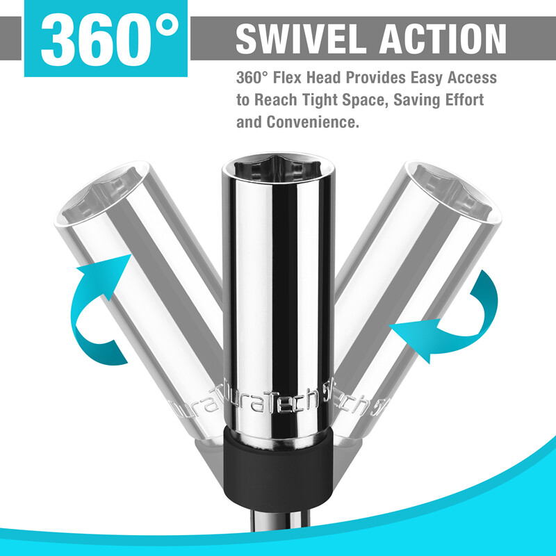 360° SWIVEL DESIGN: 360° flex head and extra-long rod provide easy access to reach tight space, saving effort and convenience