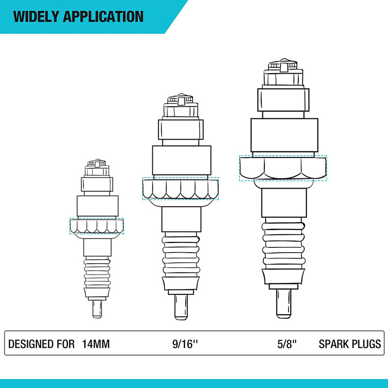 3/8 inch Drive TangDesigned for 3/8'' ratchet wrench | Magnetic CoreEffectively protect and secure plugs tightly and minimize damage |