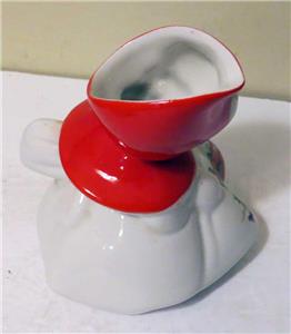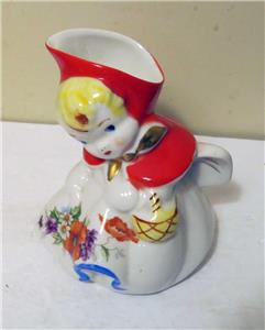 VINTAGE HULL POTTERY LITTLE RED RIDING HOOD 5" CREAMER W/ TAB HANDLE MILK JUG. Condition Is Used. The paint is vibrant and intact. It could be small wear. No chips or cracks.