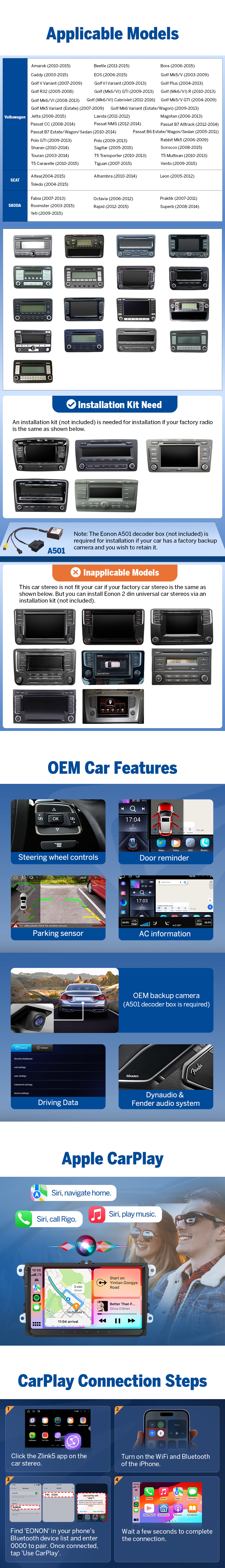 Inapplicable Volkswagen OEM radio: RCD550 | RNS810 | RNS850