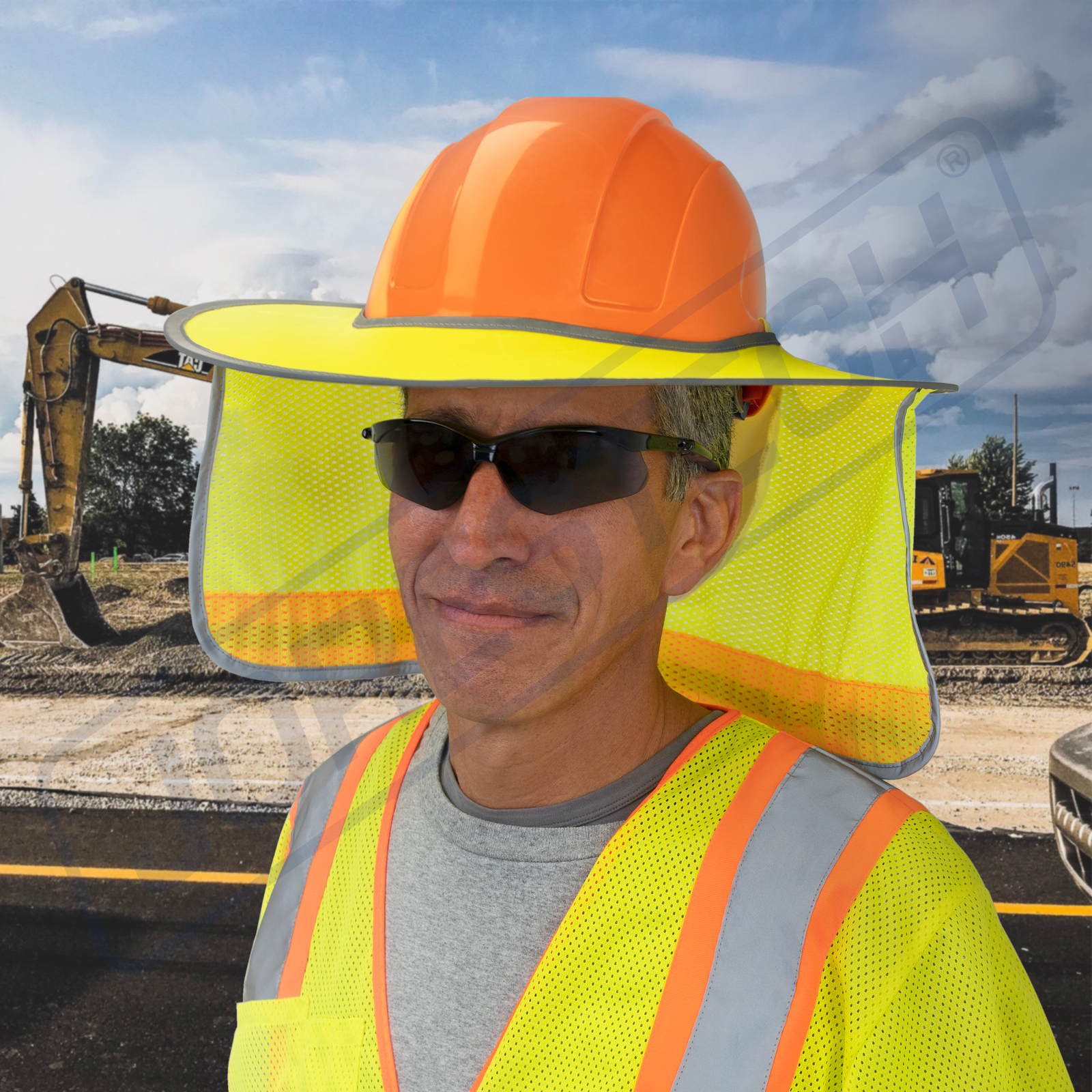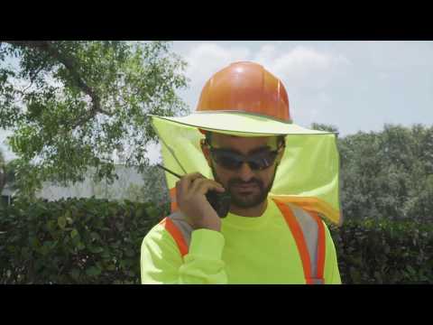 When working outdoors, stay protected with the JORESTECH® Hard Hat Sun Shade. Designed to shield users from the heat and rays of the sun, it features a full brim that keeps direct sunlight away from the face and eyes for a clear and wide field of vision. Additionally, a neck cover with open-mesh construction provides the perfect combination of breathability and sunburn protection. This sun shade was specifically built high visibility contrasting colors, reflective details around the edges, and a 1” (25.4 mm) reflective tape on the back, enhancing user safety and visibility in foggy or low-light conditions. Built for ultimate comfort, reliability, and adaptability, it features a hook and loop strap on each side, and a double fabric in the front and back that allows users to attain a secure and personalized fit for a wide variety of helmets.