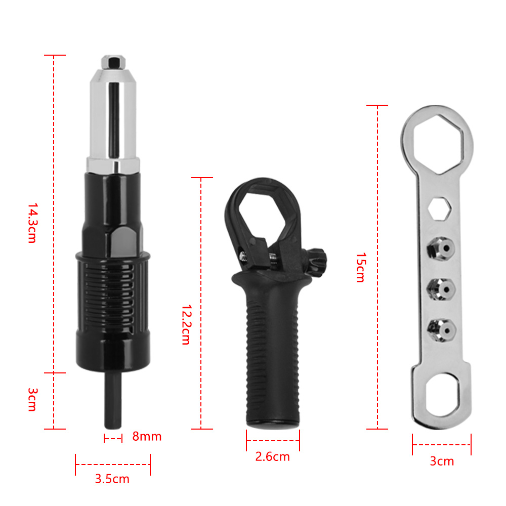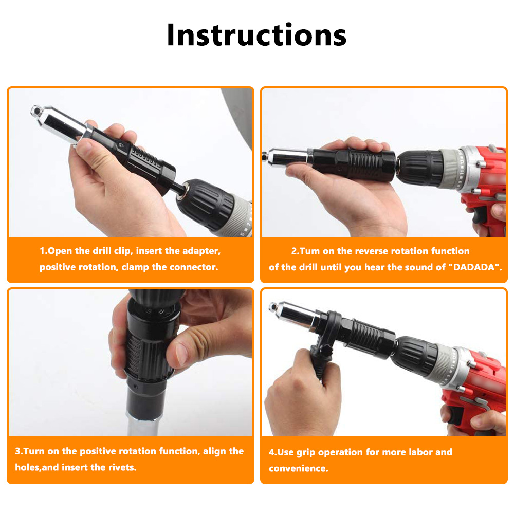 The adapter tap screw is connected to the electric drill,and the electric rivet gun is quickly transformed.It is easy to install.