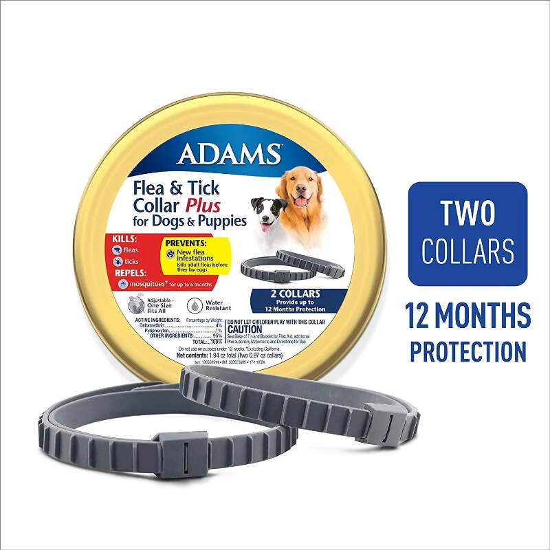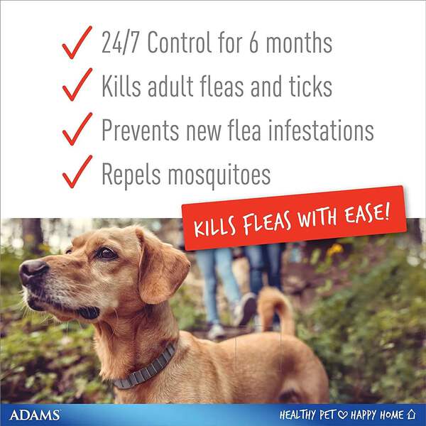 Help protect your dog or puppy with the Adams Flea & Tick Collar, designed for convenient, long-lasting pest control. Each adjustable collar provides continuous release of active ingredients to help kill fleas and ticks and reduce reinfestation. The water-resistant design helps maintain effectiveness during everyday activities like rain or occasional swimming. With two collars included, this set offers an easy, mess-free solution for ongoing protection—simply adjust for a comfortable fit and trim excess length.