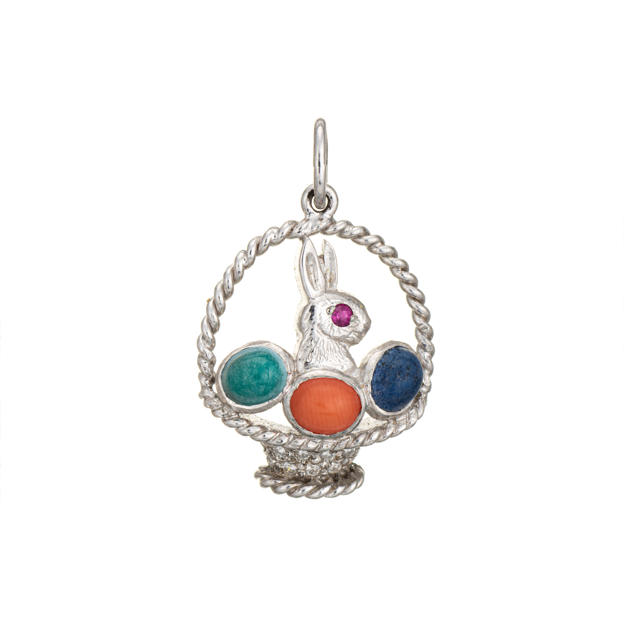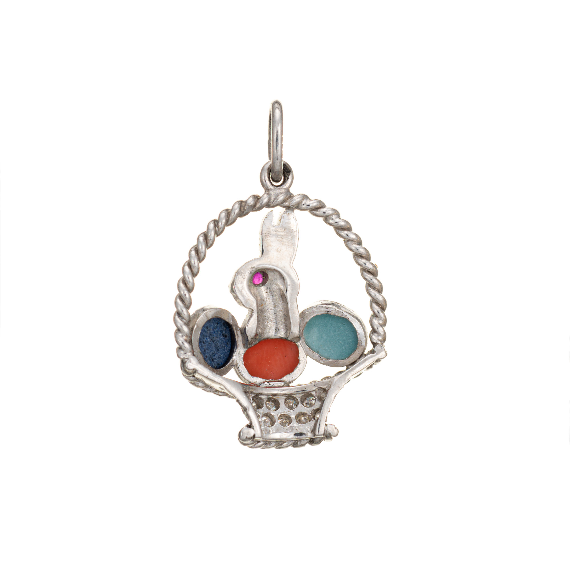 Vintage Art Deco Charm Easter Bunny in Egg Basket Pendant Platinum Fine Jewelry