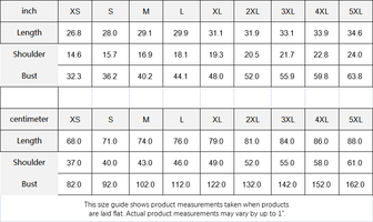 | inch | XS | S | M | L | XL | 2XL | 3XL | 4XL | 5XL |