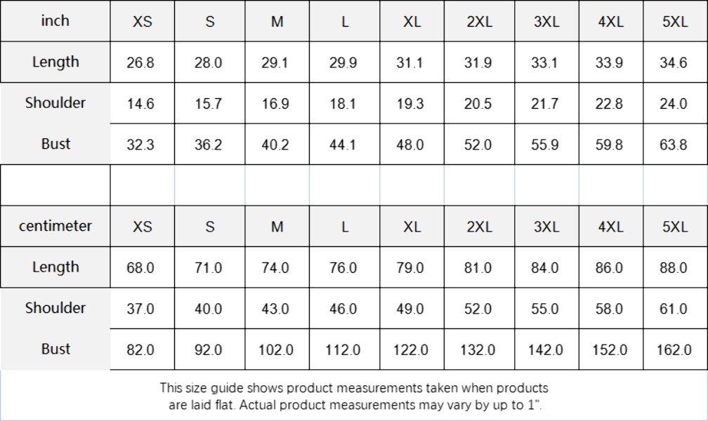 | centimeter | XS | S | M | L | XL | 2XL | 3XL | 4XL | 5XL |
