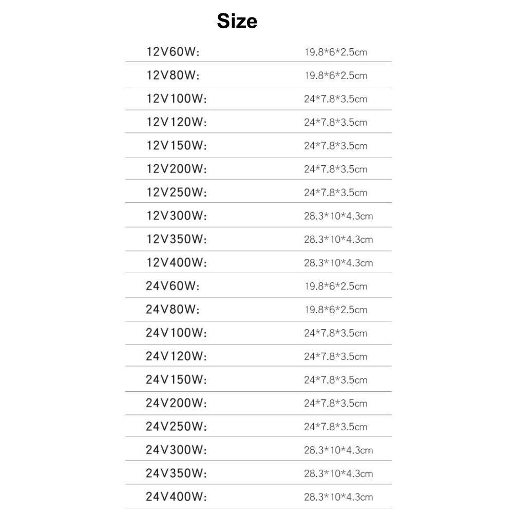 12V 33A 400W 250x75x40mm weight 1460g Input 170V -250V