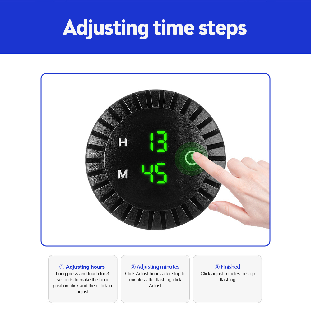 2. Adjust the hour: long press the touch for 3 seconds to make the hour position blink and then click to adjust