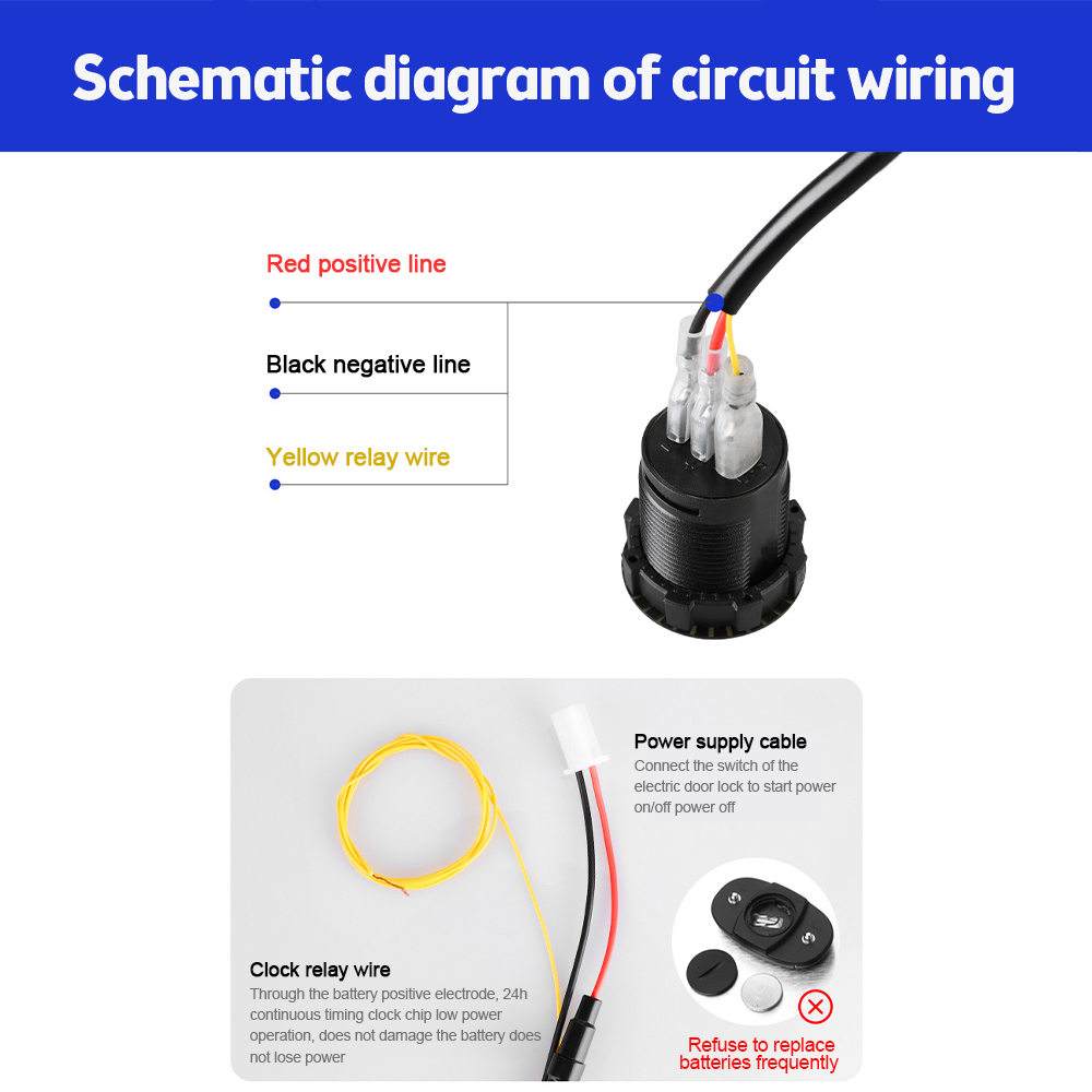 6. With a clock relay wire, straight through the positive battery, 24h continuous timing clock chip low-power operation, not to hurt the battery does not lose power