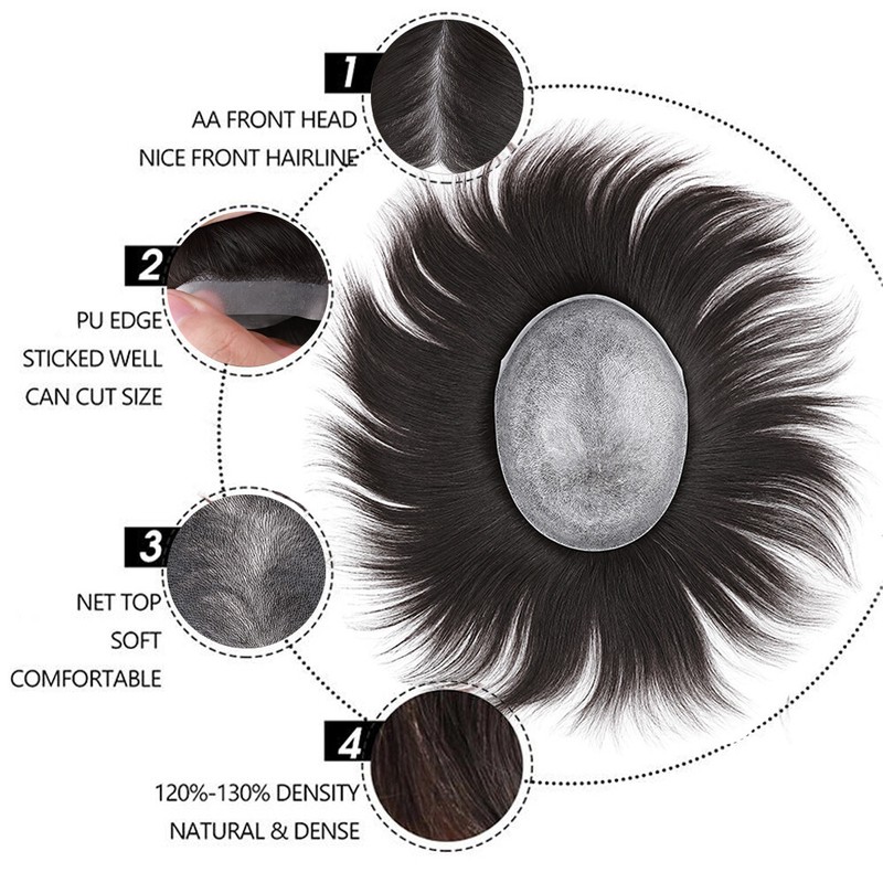 Texture: Grade AAAA+ THICK Remy Human Men Hair Toupee