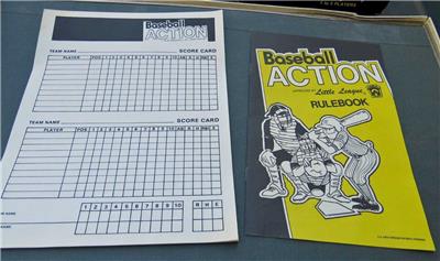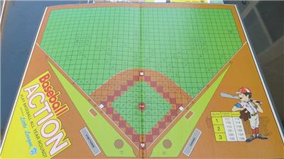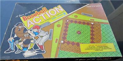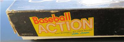 Vintage Ansudon Baseball Action game includes everything pictured in used played with vintage shape with instructions. The game is complete, box has some lite wear and corner tear., a rare find.