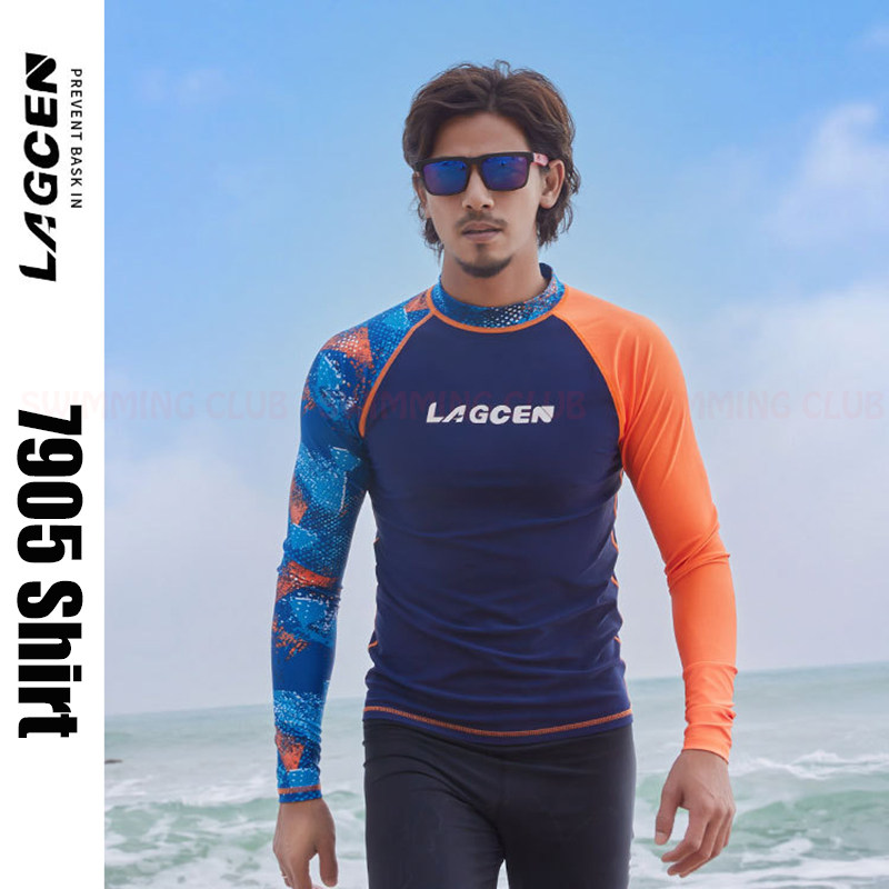 MEN'S RASH GUARDS LONG SLEEVED SURF SNORKELING WATER SPORTS SWIM TOP SHIRTS 7905