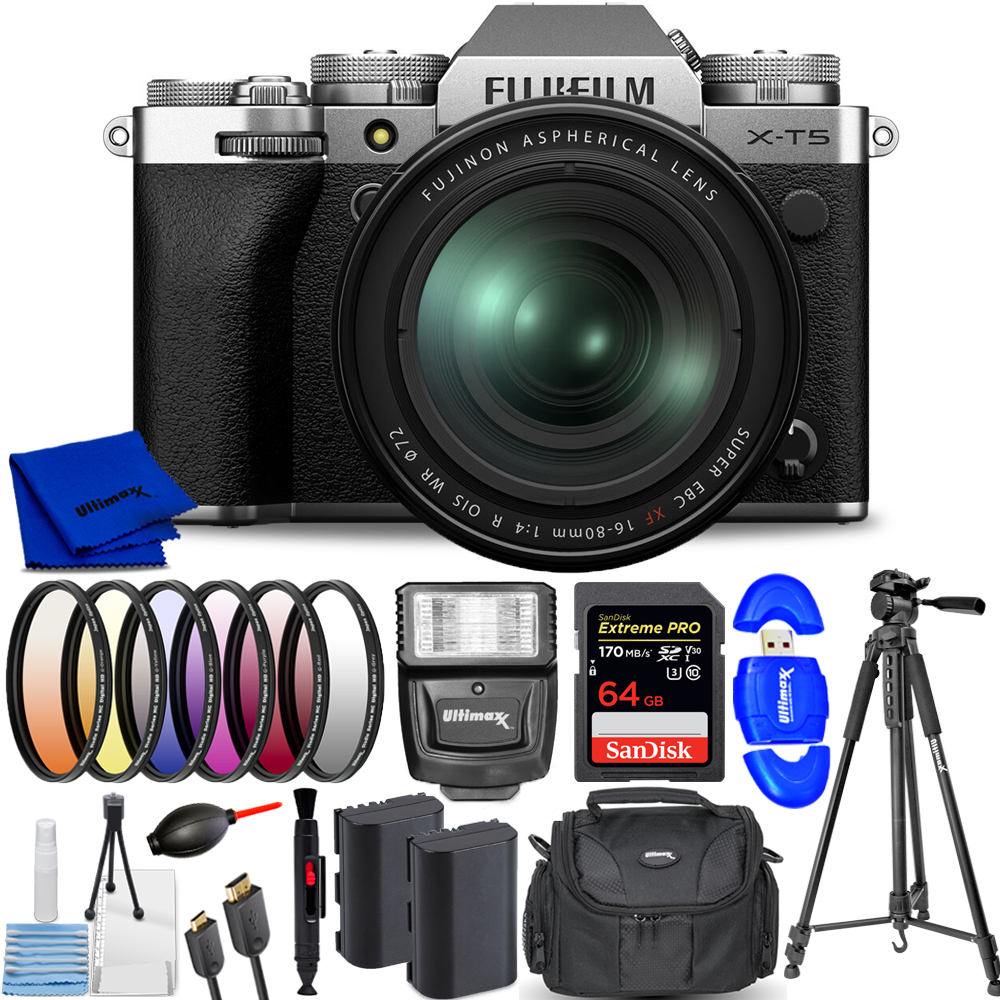 - FUJIFILM X-T5 Mirrorless Camera with 16-80mm Lens (Silver)