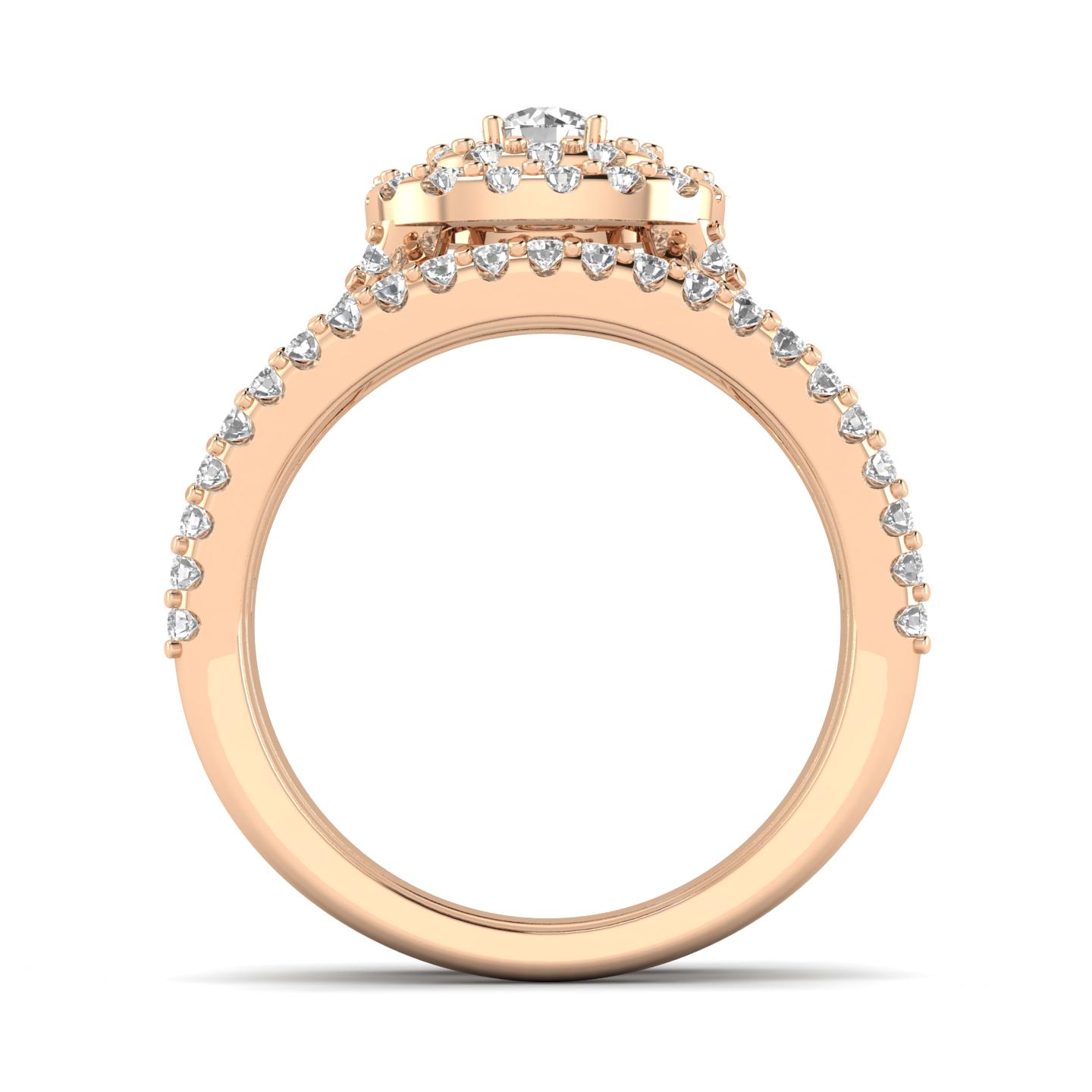 F/SI2- 1 1/4 Carat TW Cushion Halo Diamond Engagement Wedding Ring Set 10k Rose Gold