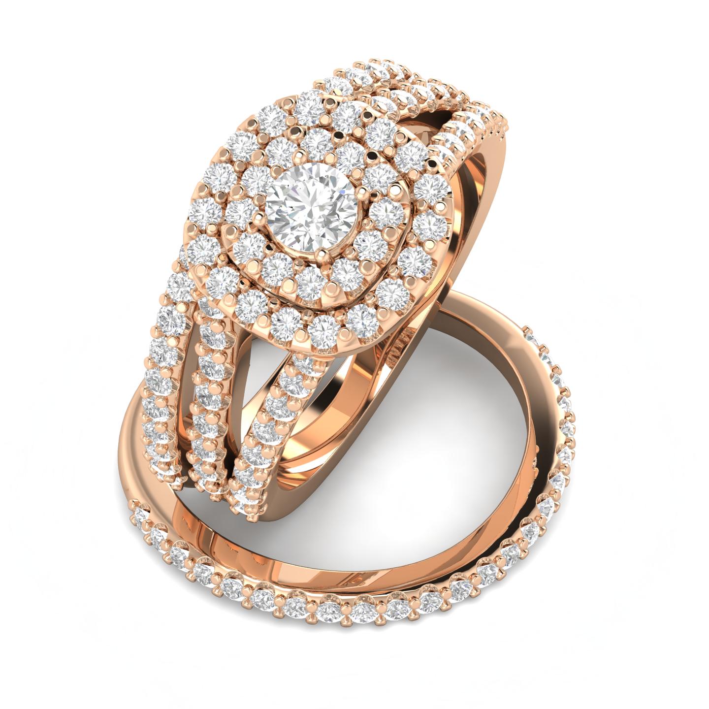 This Beautiful Wedding Bridal Set is hand crafted in 10k solid Rose Gold with total diamond weight of 1.25 carats. The diamond Grading is SI2 clarity and of F-G color. A must have at a unbelievable value.