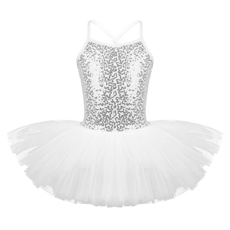 Top bodice is sequined, which can make your little girl more twinkled at the stage. Criss-cross strap in the back.