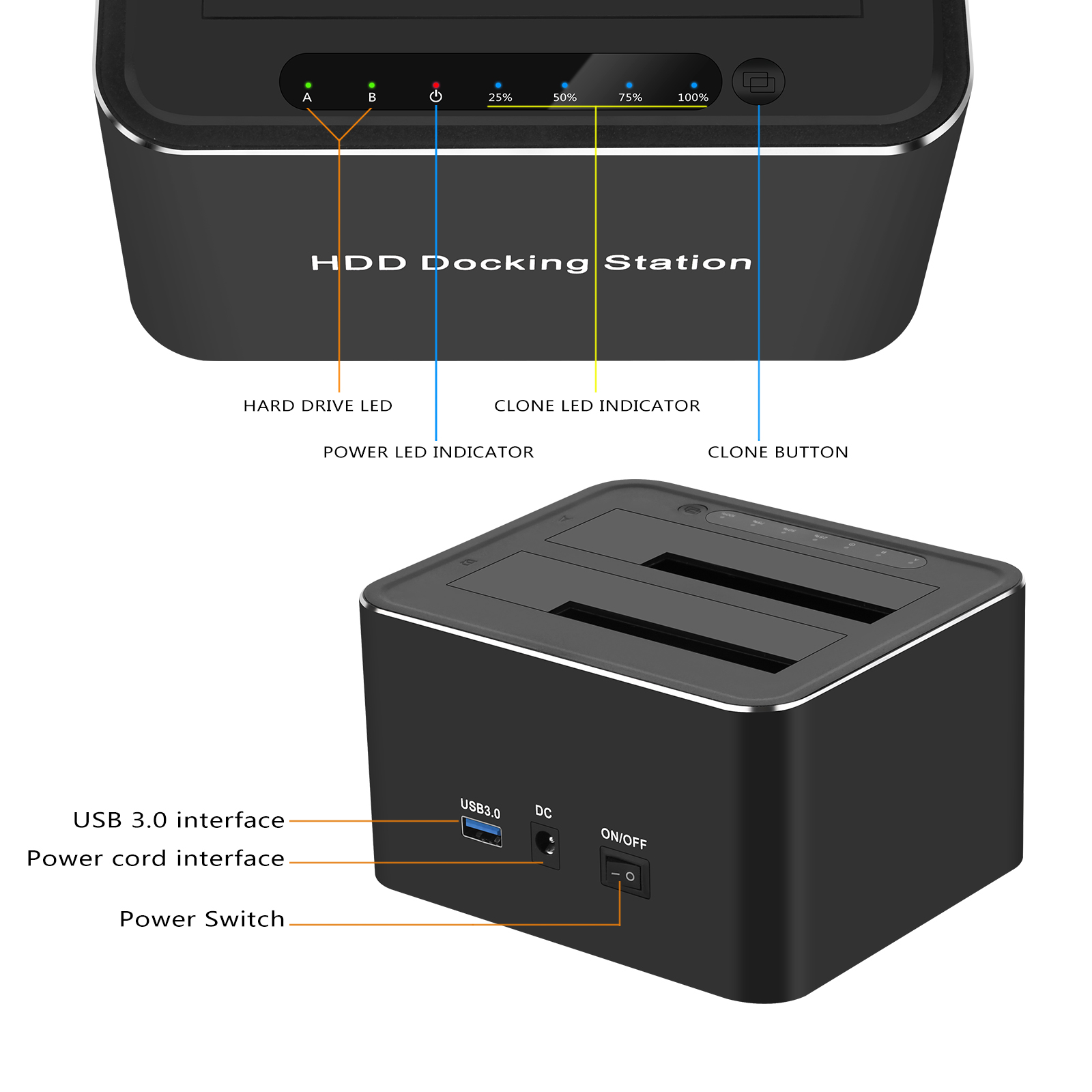 SATA dual disk cloner 2.5/3.5 inch universal hard disk base USB3.0 offline copy mobile hard disk box