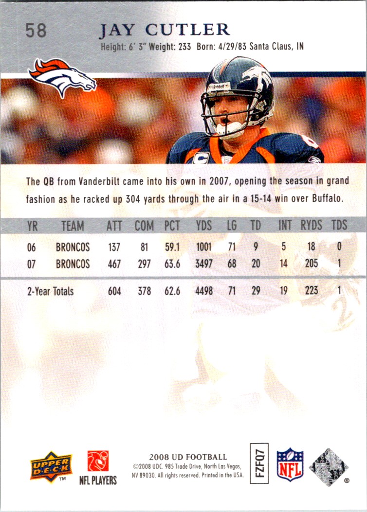 2008 Upper Deck Football 58 Jay Cutler