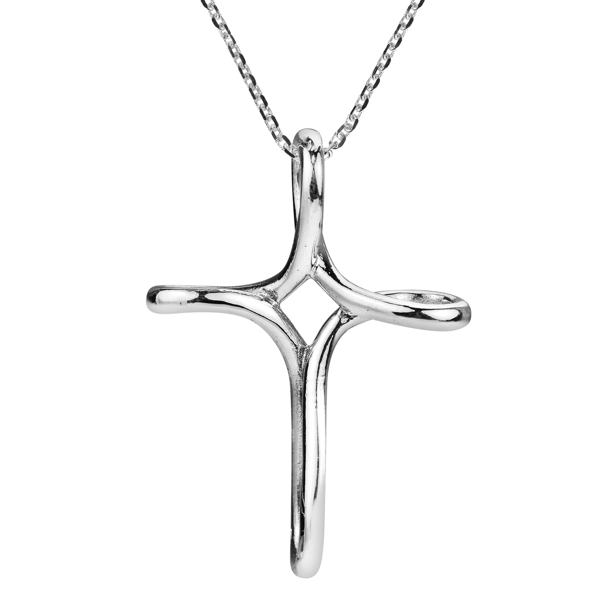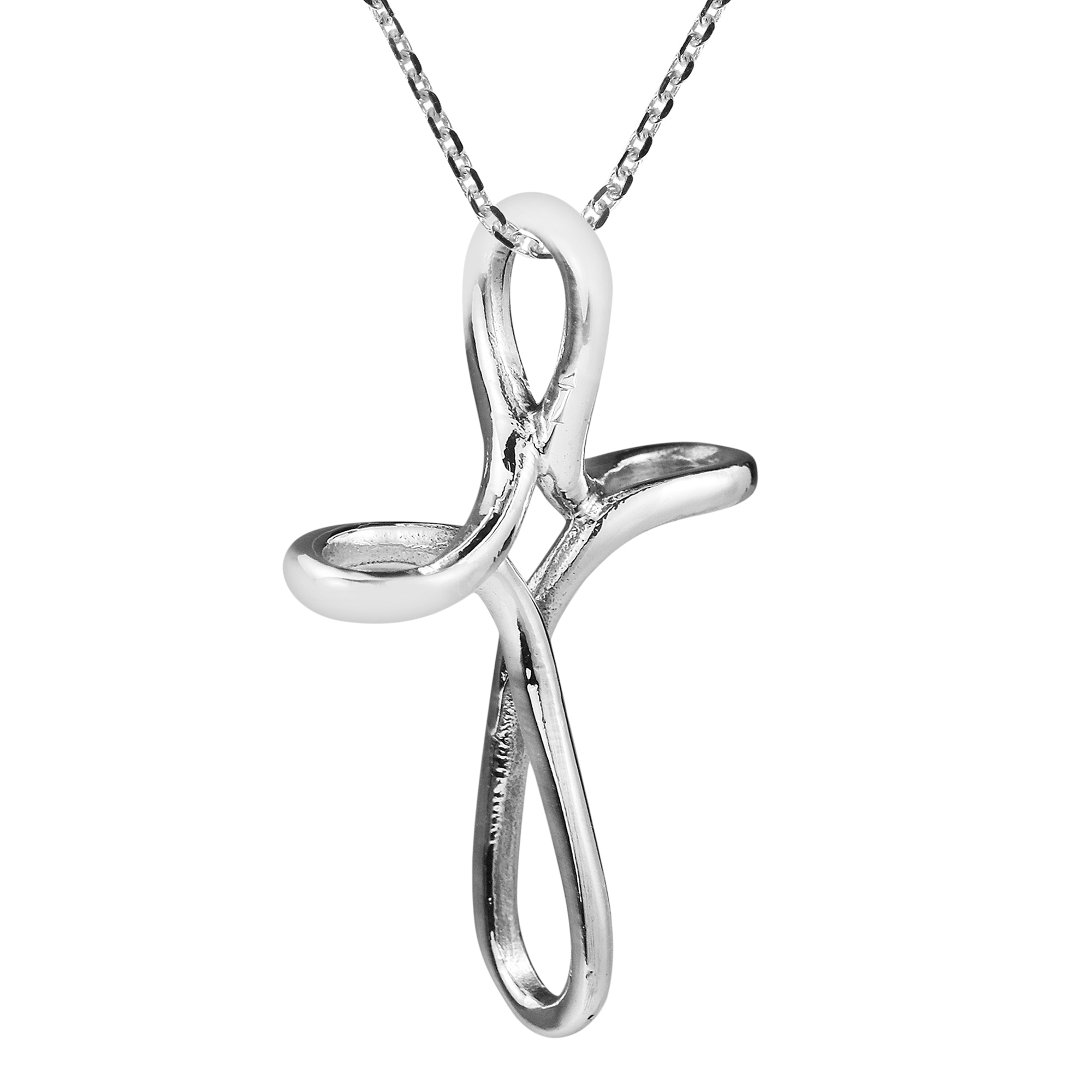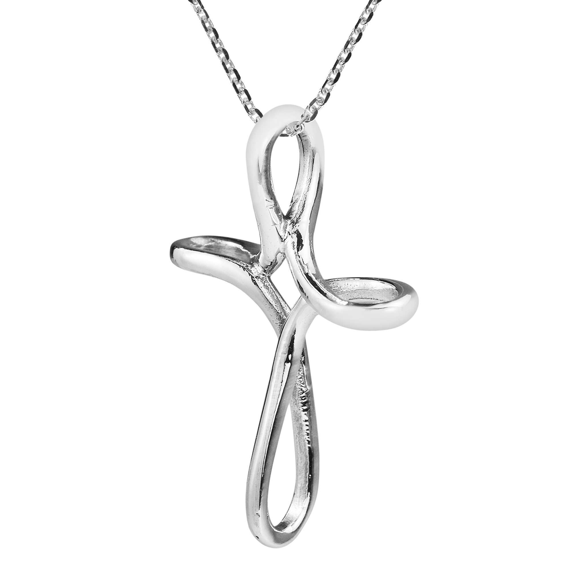 Shiny Cross Infinity Loop Sterling Silver Slide Necklace |