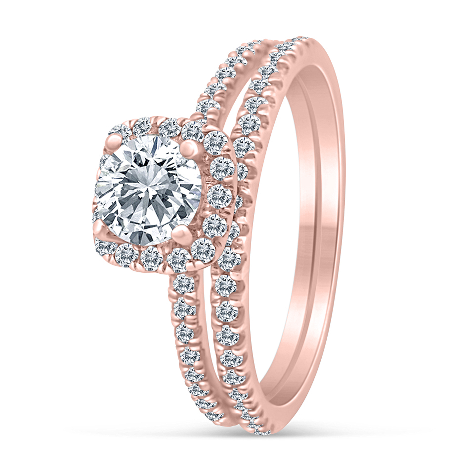1.00 Carat TW Diamond Halo Bridal Set Engagement Ring in 10k Rose Gold (H-I, I2)