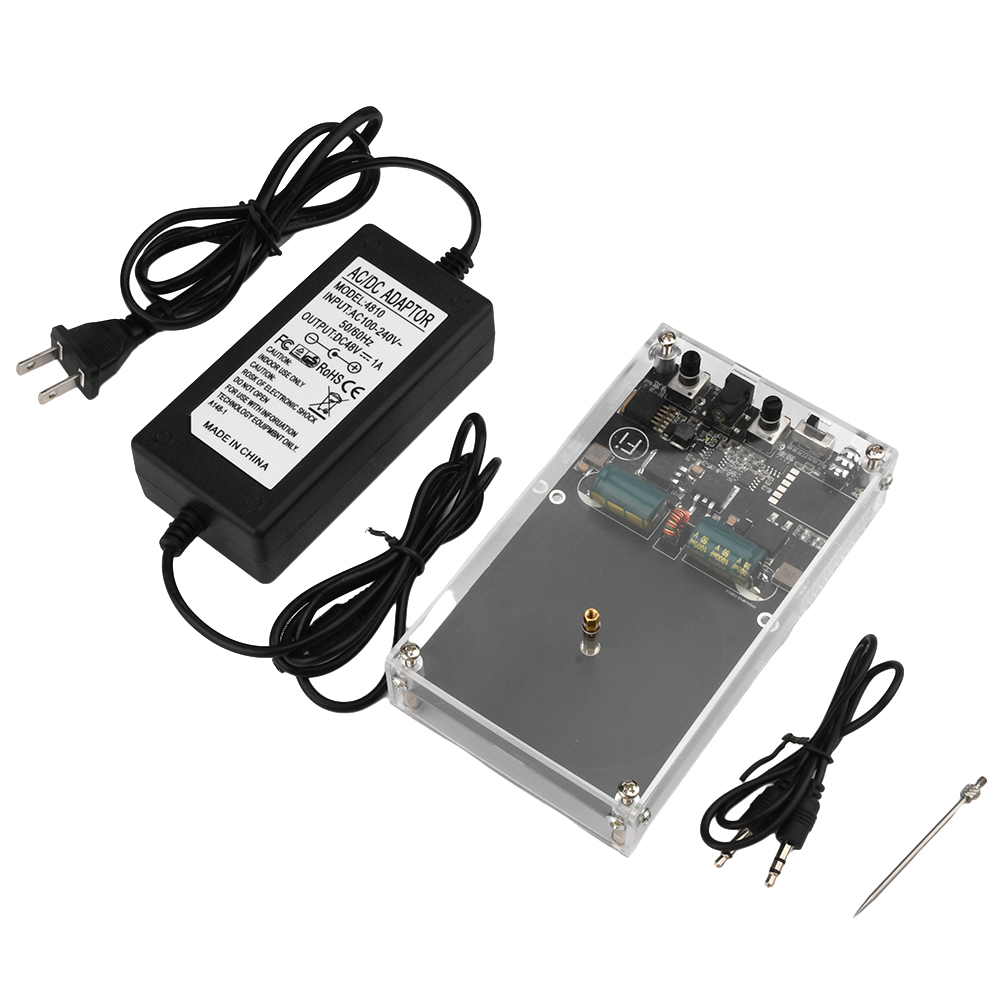 First, the pulse width knob right screw to the end, and then the switch to the left, and then connect the Bluetooth, the sound to the maximum, start playing square wave music, and then slowly left screw the pulse width knob, adjust the arc power, pay attention to the power is not too large, otherwise caused by the protection of power failure.