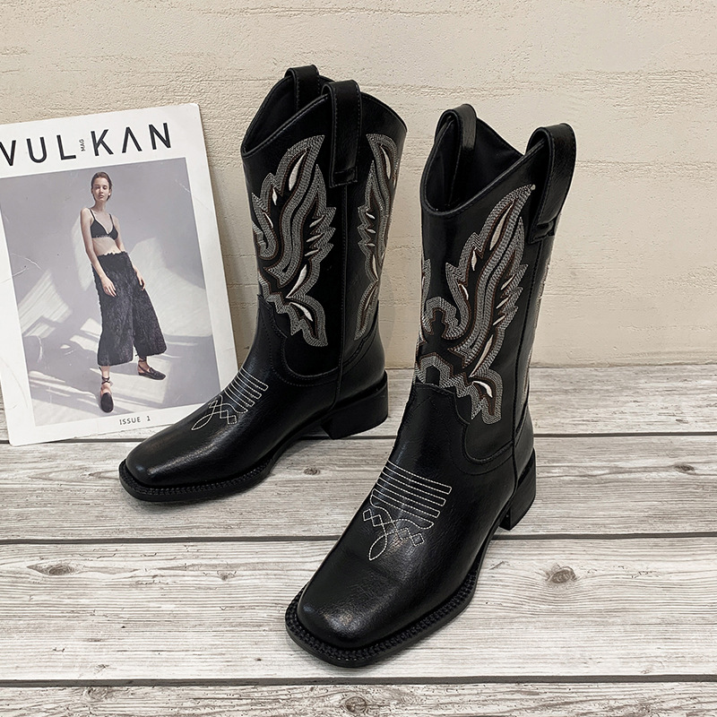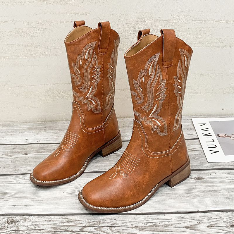 Cowboy Boots for Women Western Shoes Cowgirl Boots Embroidered Wide Toe Mid Calf