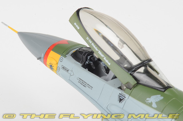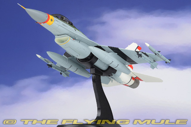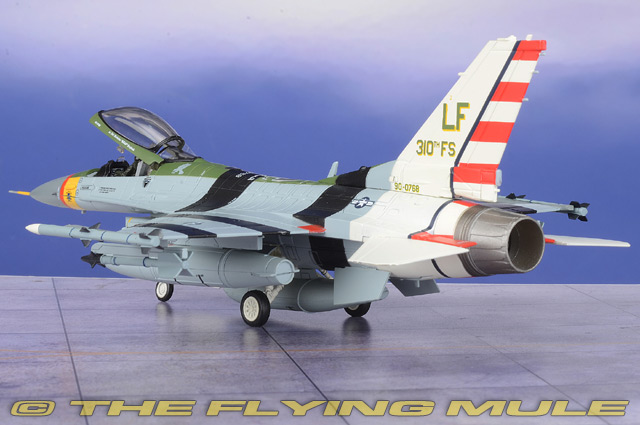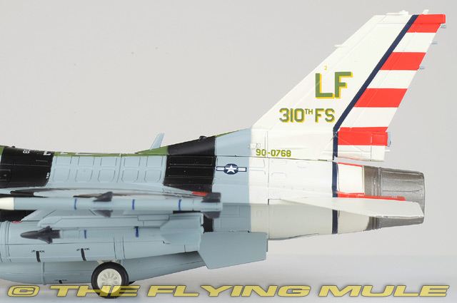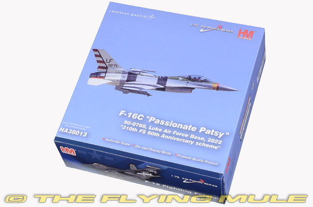 Personnel from the 56th Equipment Maintenance Squadron were given the task of giving F-16C 90-0768 a special paint scheme to be ready for January 13, 2022 at Luke AFB, Arizona. The occasion was the celebration of the 310th FS/56th FW 80th Anniversary. The paint scheme was meant to replicate that of the 310th Pursuit Squadron P-47 Thunderbolt 42-29091 "Passionate Patsy" during WWII. The 310th is a subordinate unit of the USAF's Air Education and Training Command (AETC), both celebrating 80 years. Lockheed F-16C Fighting FalconDesigned by General Dynamics as a lightweight, daytime USAF air-combat fighter, the F-16 was first flown on January 20th, 1974. This single-engine, supersonic aircraft has, over the years, evolved into a multirole aircraft. It has a frameless bubble canopy-giving its pilot superior visibility-and it uses advanced aerodynamics. The F-16 was one of the first designs to use a relaxed static stability/fly-by-wire system, which helps it pull 9-g maneuvers and achieve speeds of more than Mach 2. Called "Viper" by its pilots, the F-16 is considered one of the most successful aircraft designs of the Cold War, with 4,400+ aircraft built since 1976.© Copyright 2003-2026 The Flying Mule, Inc. Hobby Master's 1:72 scale F-16 is constructed using an intelligent mix of diecast metal and plastic, which allows for the greatest possible detail. Among this model's most remarkable features are an articulating hinged opening canopy that closes with almost no visible gap and landing gear that has been constructed as subassemblies for easy configuration. It also includes a large number of pad-printed flight instruments and a rudder and engine intake that are accurately replicated in plastic. The models in this series cover early variants to the most advanced later variants featuring conformal fuel tanks as well as both single and two seat variants. © Copyright 2003-2026 The Flying Mule, Inc. Hobby Master 1:72 Air Power SeriesThe Hobby Master "1:72 Air Power Series" range presents detailed, ready-made diecast models of military aircraft.Hobby Master "1:72 Air Power Series" diecast airplanes feature: