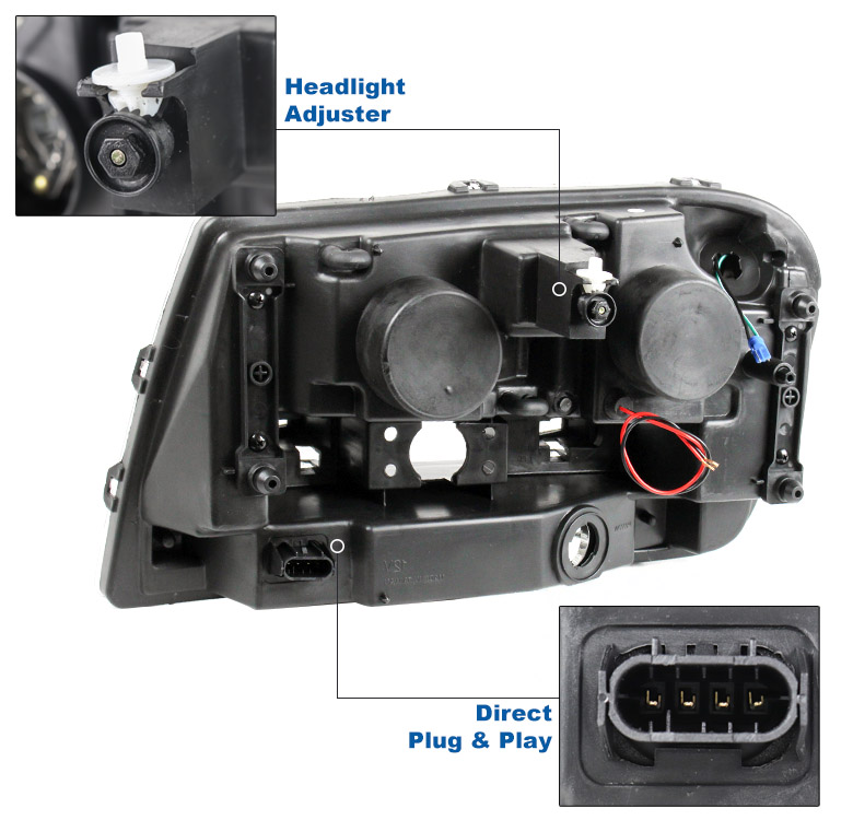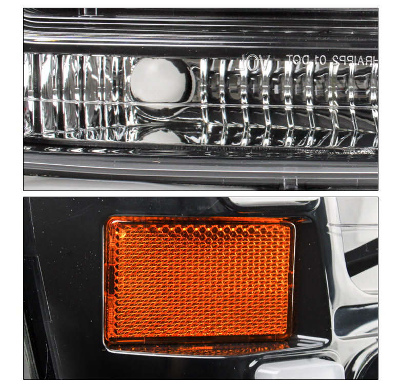 | Color | Headlights: Black housing with clear lens DRL Lights: Chrome housing with clear lens |