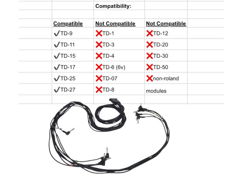 Our Dolby Drums branded cable harness loom designed to work seamlessly with all kits mentioned. CABLE HARNESS SNAKE LOOM FOR ROLAND V DRUM MODULE TD-9 TD-11 TD-15 TD-17 TD-25 TD-27