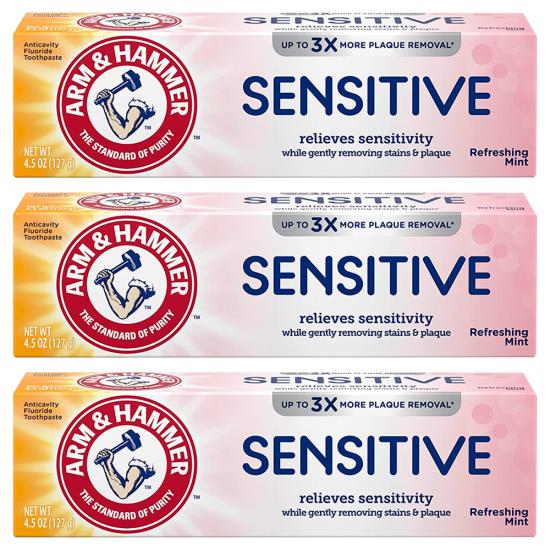 Pack of (3) New ARM & HAMMER Sensitive Teeth & Gums Toothpaste 4.5 oz