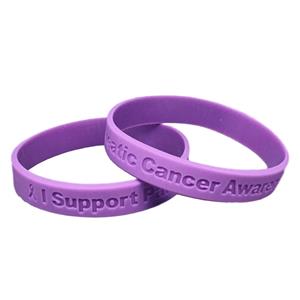 These 2 Adult size Purple Silicone Bracelets have the words " I Support Pancreatic Cancer Awareness " debossed on them with ribbons. The silicone bracelets are made of high quality medical grade silicone that you can see and feel. The bracelets are 8 inches in circumference and comes in a bag.