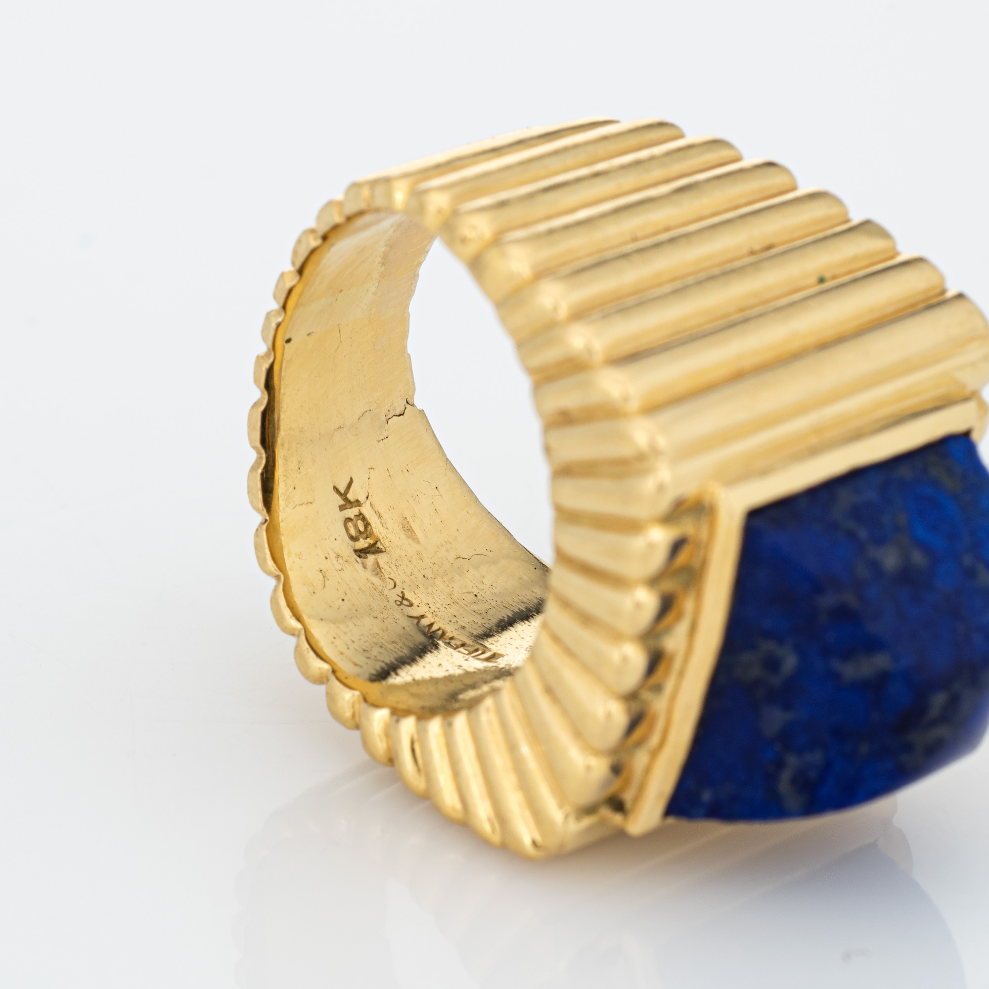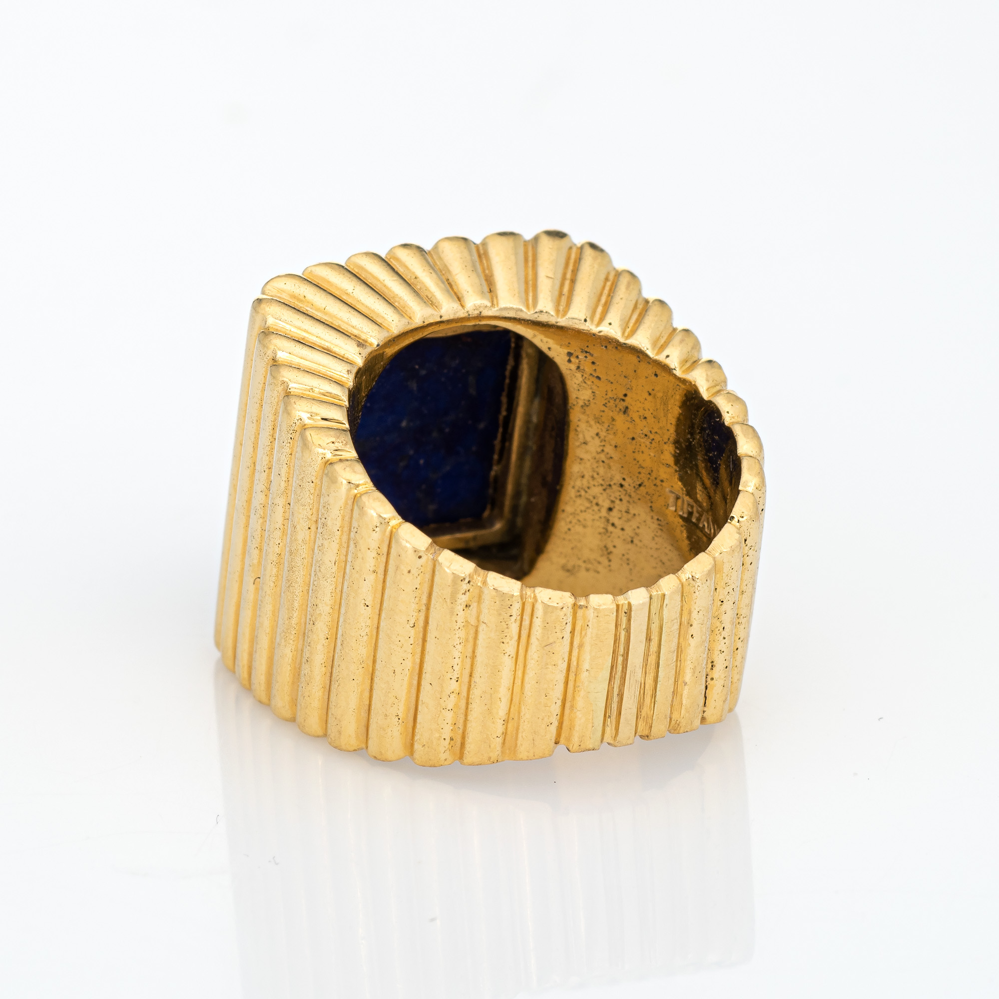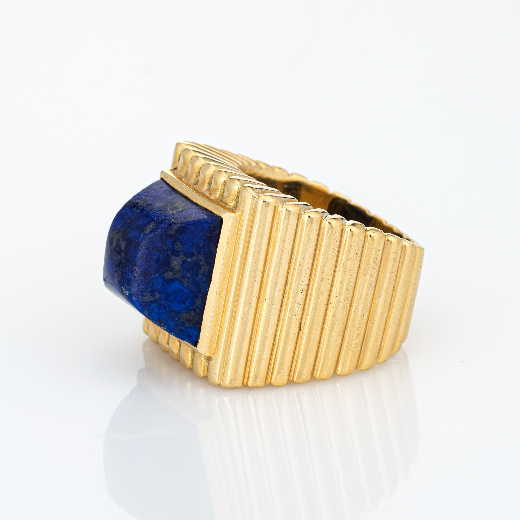 70s Tiffany & Co Sugarloaf Lapis Lazuli Ring 18k Yellow Gold Sz 5 Square Ridged
