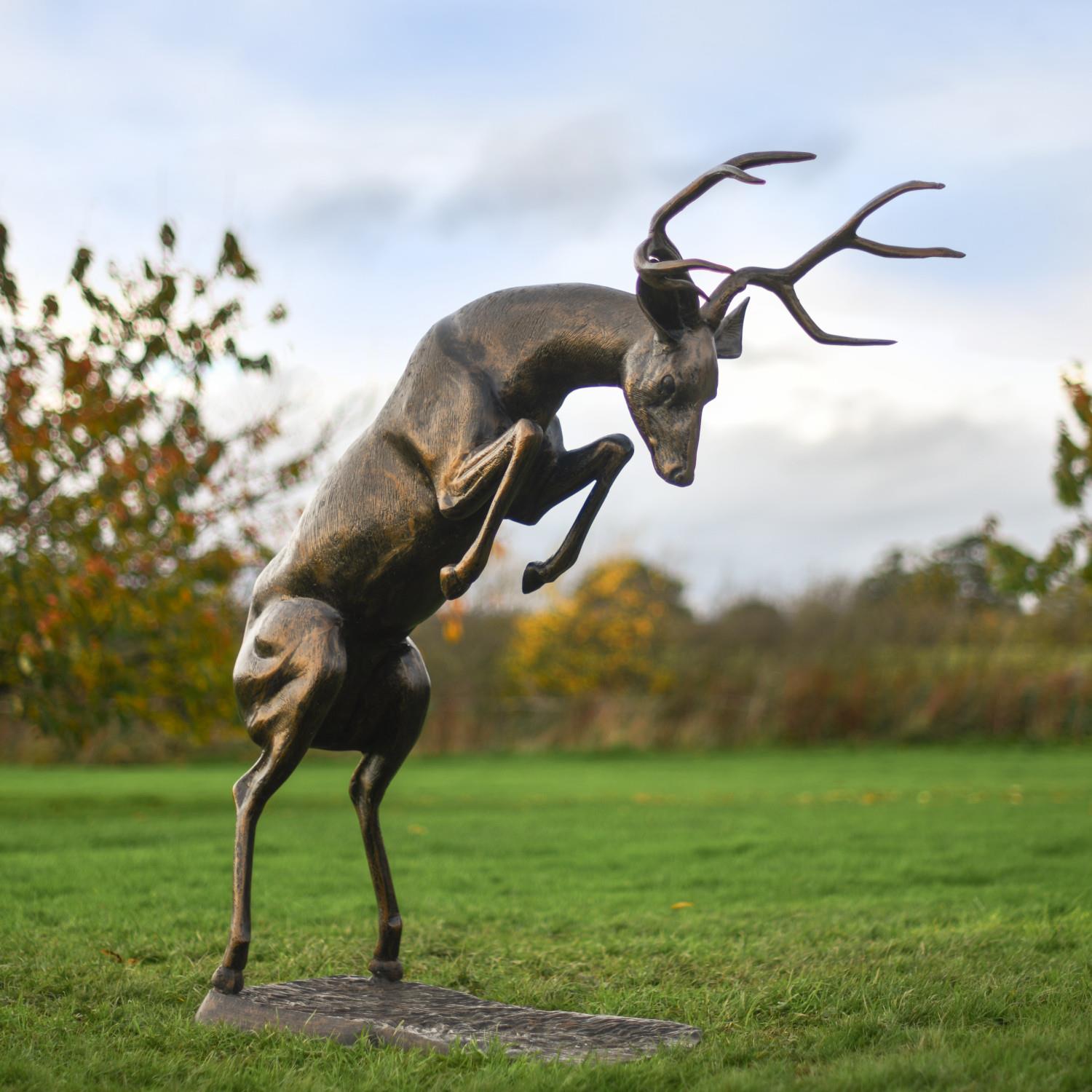 Deluxe Life-Size Fighting Buck Sculpture - Aluminium Outdoor Stag Ornament