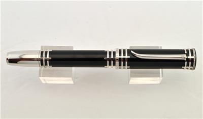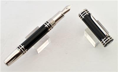 Since 1905, the evolution of American music and popular culture has been inseparable from The Julliard School in New York City. To commemorate this institution's centenary in 2005, Montblanc created a limited series of 100 special fountain pens: The Julliard Centennial Celebration, Limited Edition 100 fountain pens. The black, lacquered barrel creates a harmonious contrast to the accents in 18K white gold. With its elegant clip formed in the shape of the "Juilliard" initial, its diamond-encrusted rings and its cap ring engraved with the words "Julliard School, 100 years", this fountain pen pays a dazzling tribute to The School. The portrait of Augustus D. Juilliard finely chiseled on the 18-carat gold nib leaf trim pays homage to the founder of The School, whose reputation worldwide has never waned in the last 100 years.