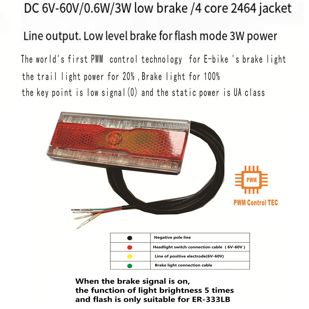 E-bike taillight for 24V / 36V / 48V e-bikes.