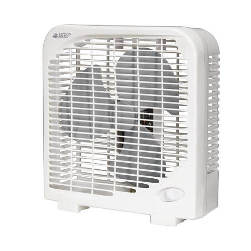 This nine-inch portable table fan has a lightweight and compact design?the fan weighs less than three pounds! It features a built-in handle, a neutral white finish, two speeds, and a safety grill that protects your fingers from the blades. This fan is perfect for ridding a small space of smoke, dust, and other odors, or for use as a quiet indoor fan in your kitchen, bedroom, office, or dorm. An easy-to-use rotary dial at the front of the fan allows you to control the speed of the blades, and the fan comes fully assembled, for your convenience.