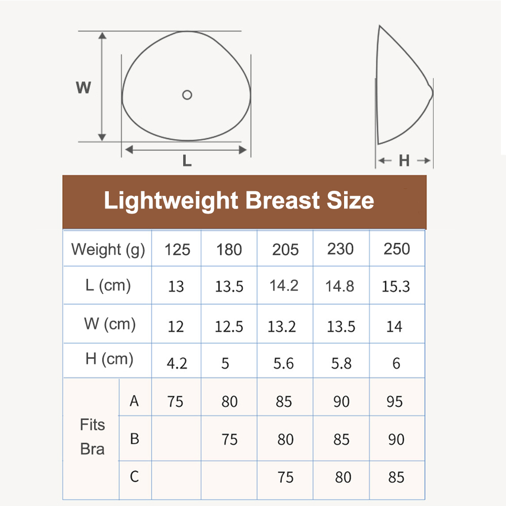 ✔Newest Safety Material: Lightweight Breast Form is made with an new-type harmless medical grade silicone, which is 30-35% lighter in weight than standard silicone and make breast form feels like a part of you. Especially helpful for women with lymphedema.