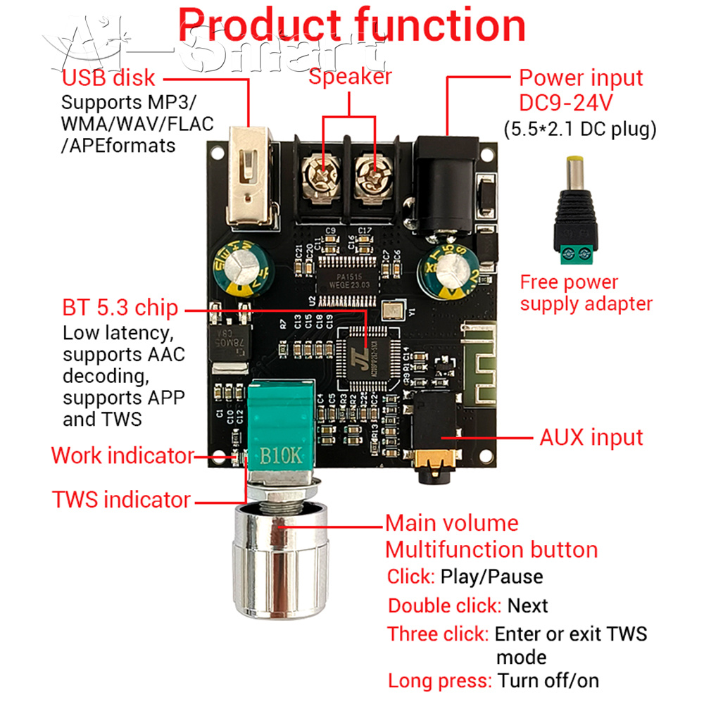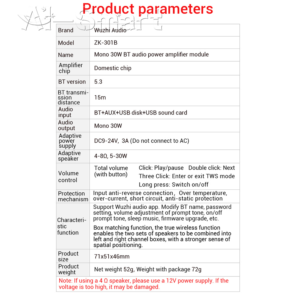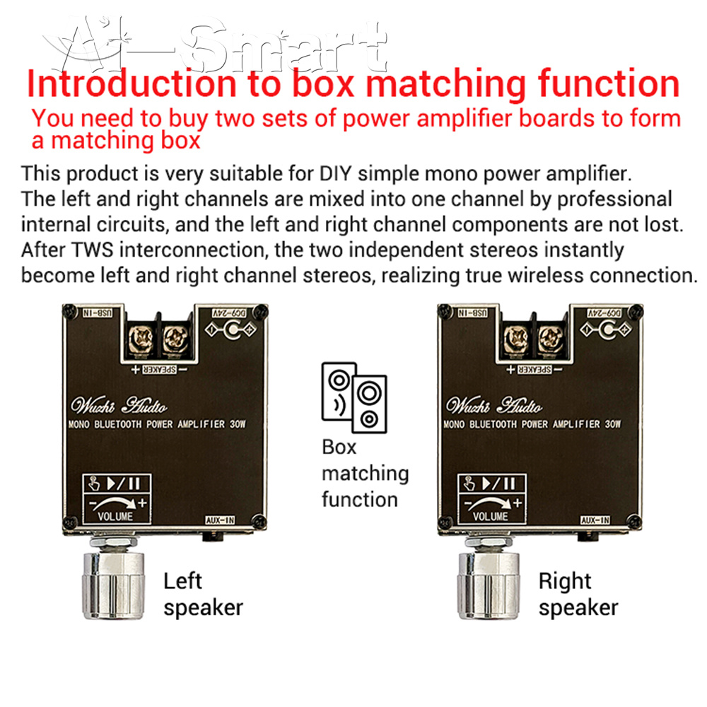ZK-301B Mono Channel 30W Bluetooth 5.3 Stereo Audio Amplifier Board Module TWS