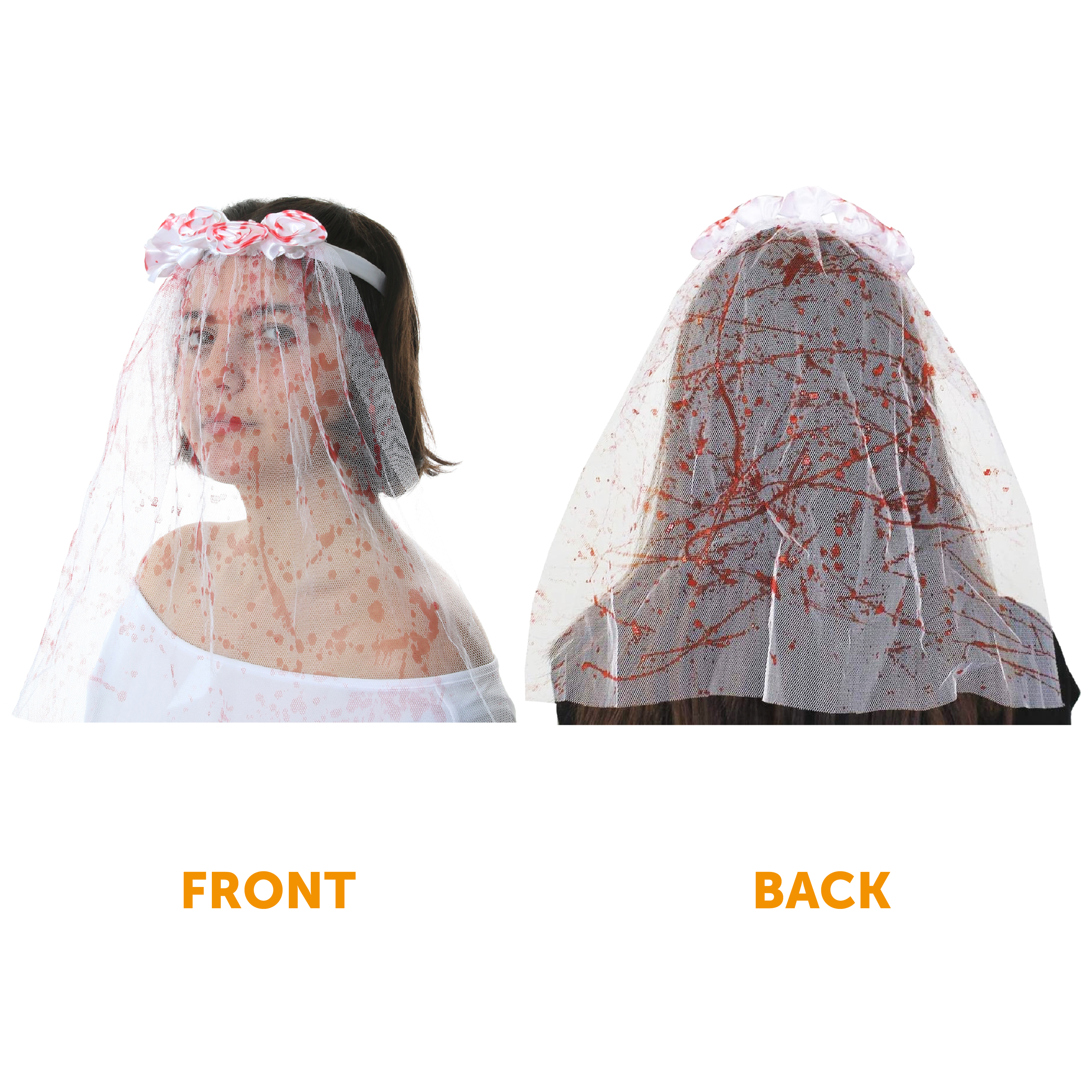 ONE SIZE FITS MOST: Attached to a comfortable one sized Headband, this Bloody Bride White Veil can be worn over the face or swept back, it is the perfect accessory for your Costume!