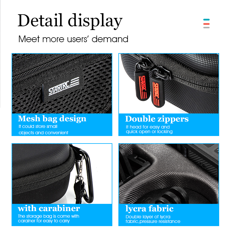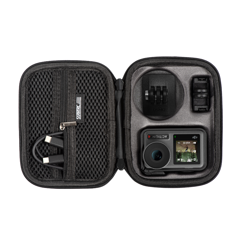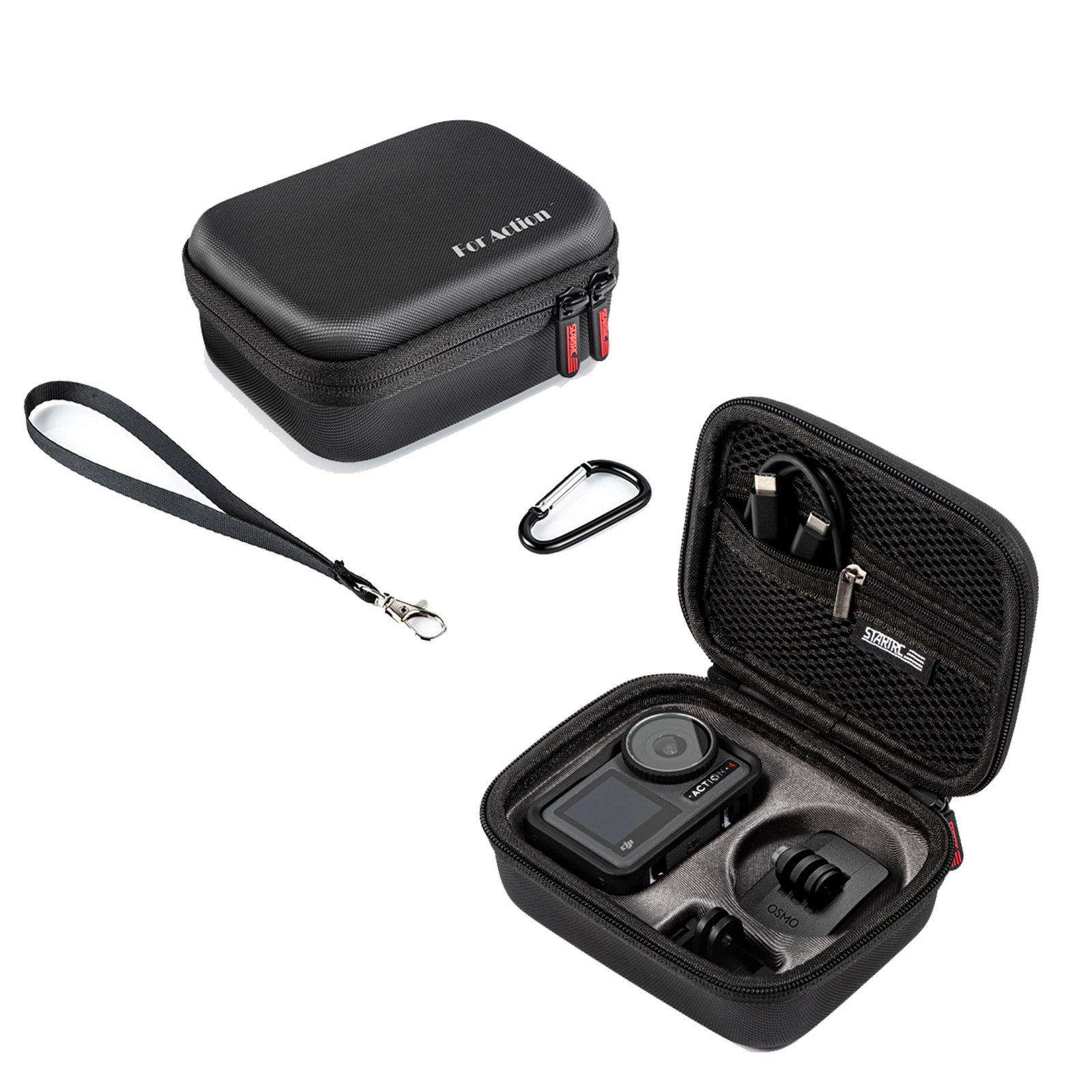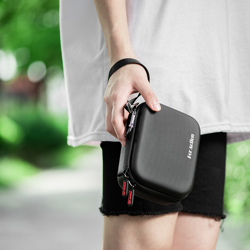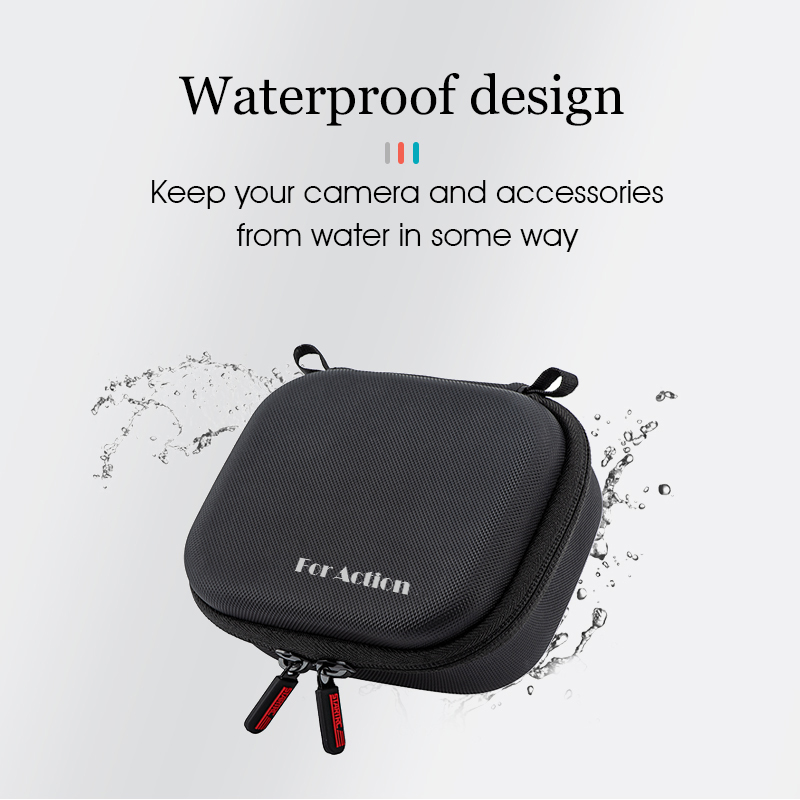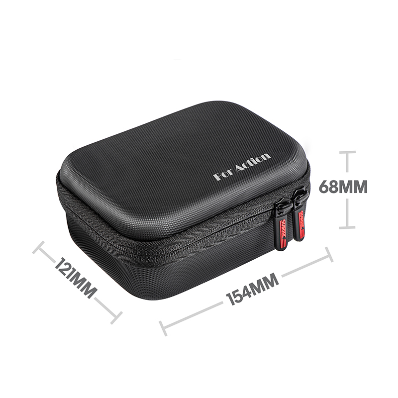 1.Designed for ACTION 4 sports camera, precision moulding, small size but large capacity, can be stored at the same time camera + battery + protective frame + quick release adapter + plane bonding base and other small accessories;