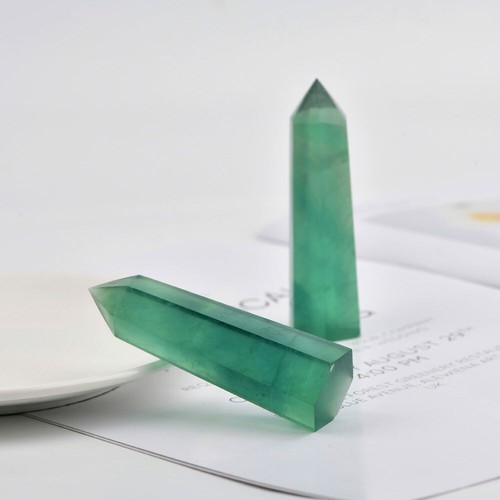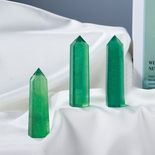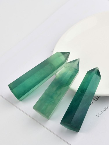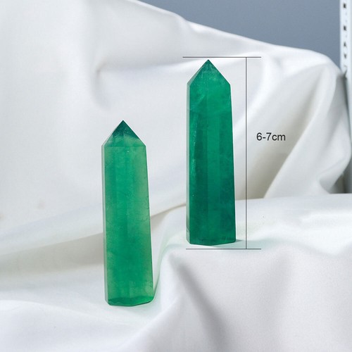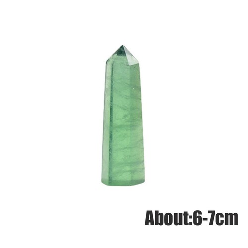 Specification: Material:Green fluorite crystal stone Type: Natural quartz crystal point Process: Manual polishing Shape: Hexagonal prism Feature:Single terminated point Length:60-70mm Function:Stone generator, enery generator,reiki wand spirituality growth Application:feng shui,house treasure,home decor,meditation,gift Color: Green
