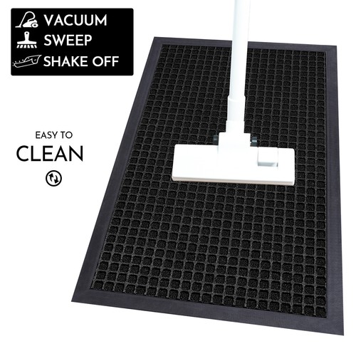 Easy to Clean: Sweep with a broom, Simply vacuum , or shake off outdoors or over your dust bin. For a deeper clean, wipe with a damp cloth and mild soap, or you can use a garden hose to rinse the mat outdoors. Allow your mat to fully air dry before next use. Do not use bleach.