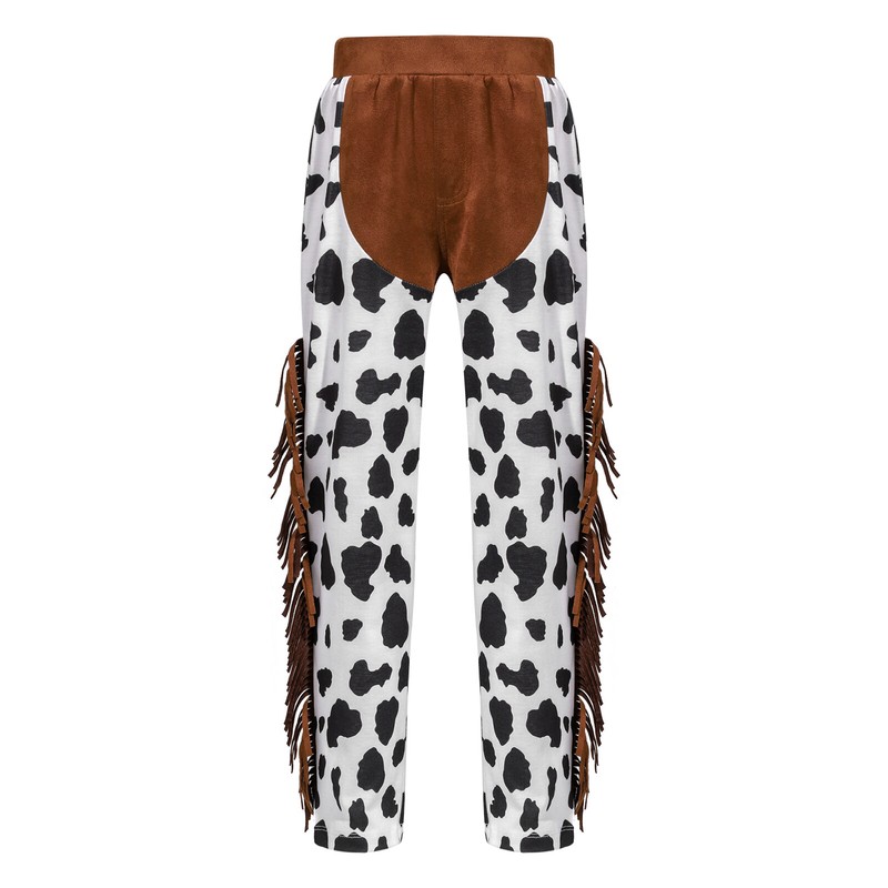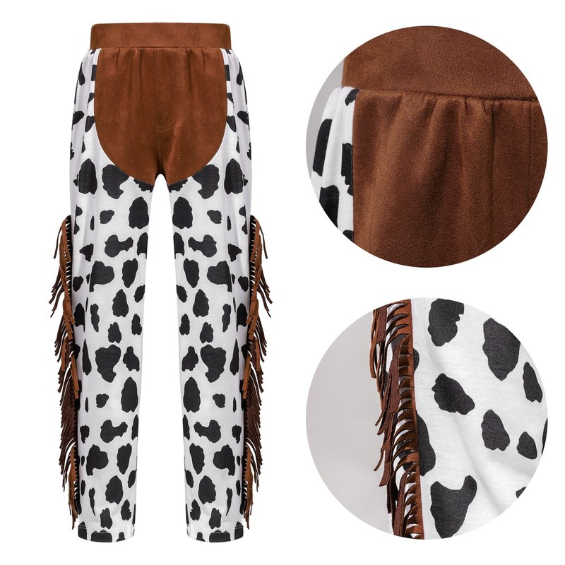 Western cowboy costume pants with wide elastic waistline is easy and comfy to wear.