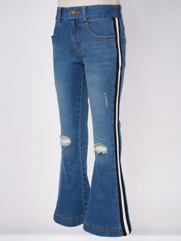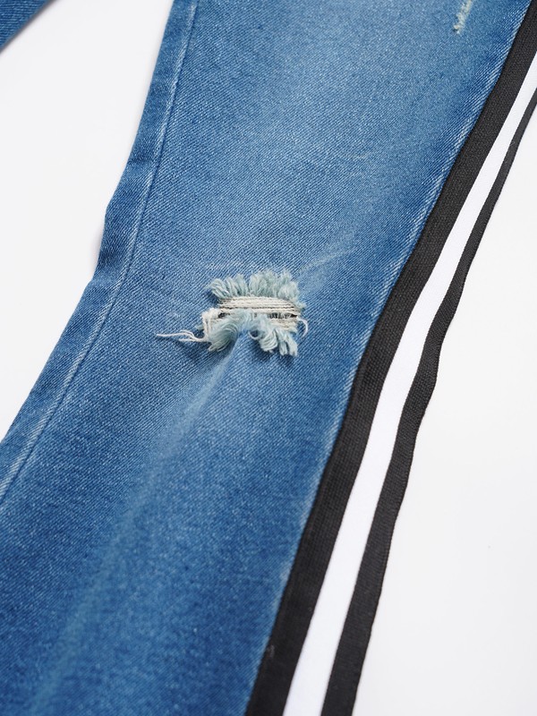 Contrast stripe designs on side seam, burred and ripped details are on pants, creating a youthful and stylish look.