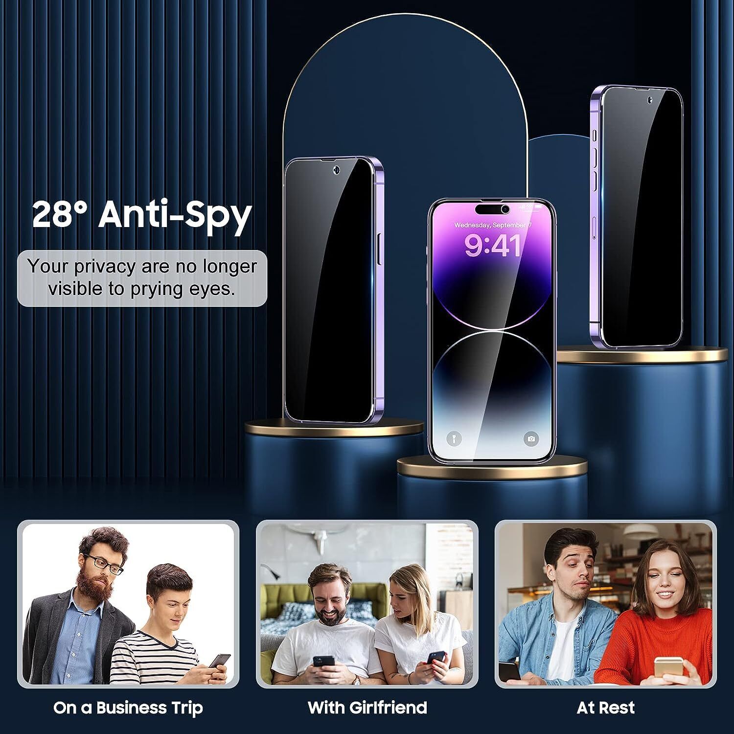 - 【Shatterproof and Scratch-Resistant】 The creen protector privacy glass made of 9H super strong military explosion-proof glass, and the strengthened edge design ensure the corners of the screen are protected well, which not only shock-proof, also protecting your screen from scratches to high impact drops.