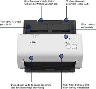 With an in-built ultrasonic multifeed to eliminate misfeeds, the ADS-4300N has a large 80 sheet ADF capacity and rapidly scans up to 40 pages per minute. The separation switch enables very thick and thin documents, plastic cards and crumpled paper to smoothly feed through with ease.