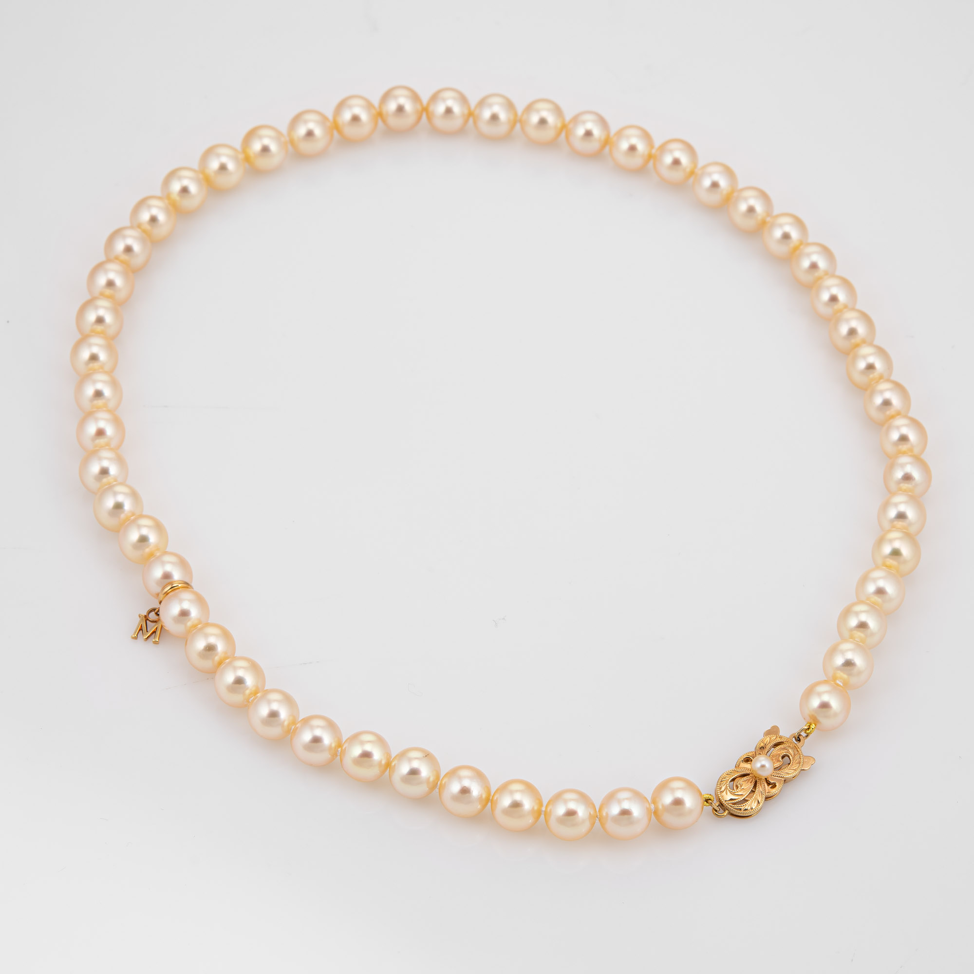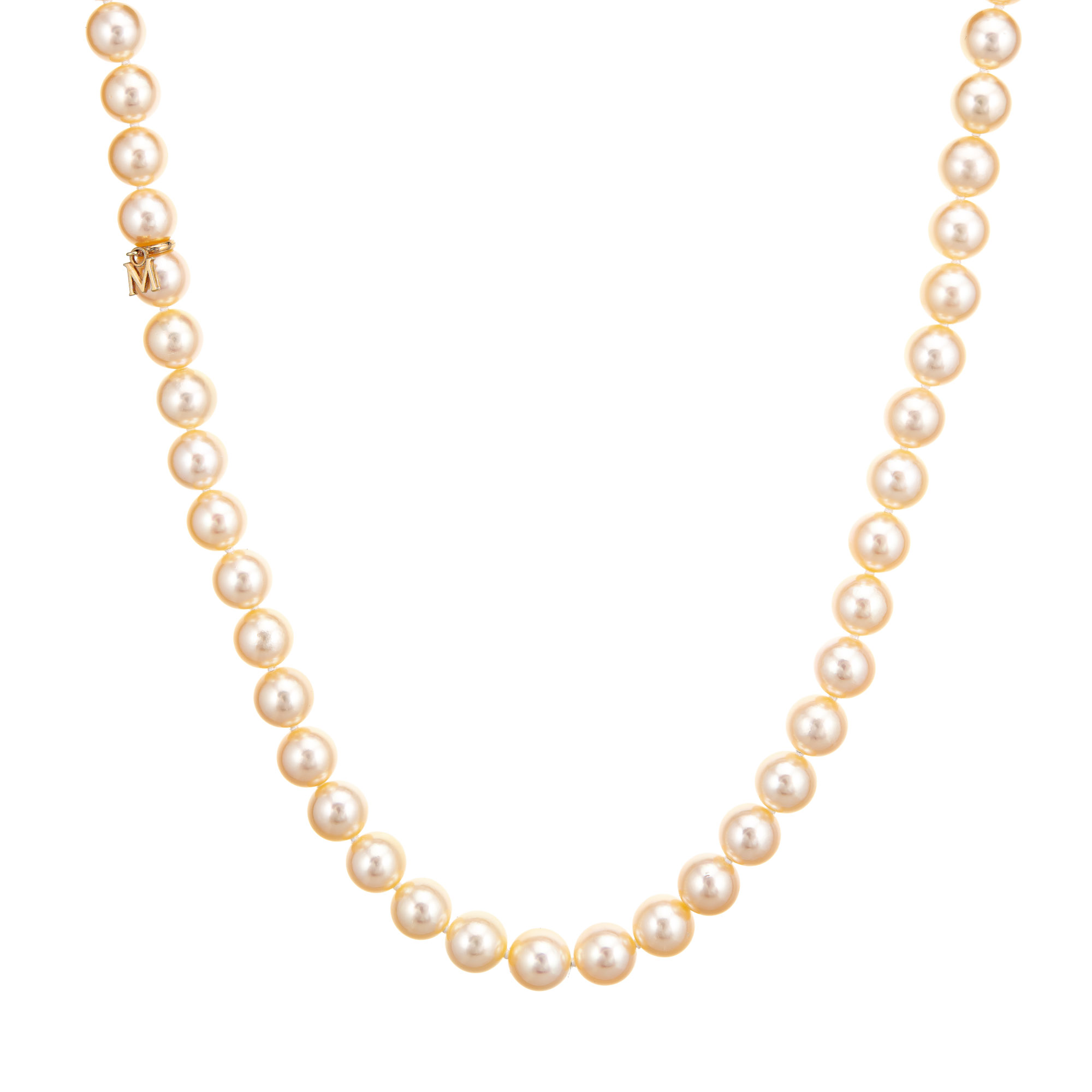 Mikimoto 8mm Golden Akoya Pearl Necklace 17" Strand Estate Fine Jewelry