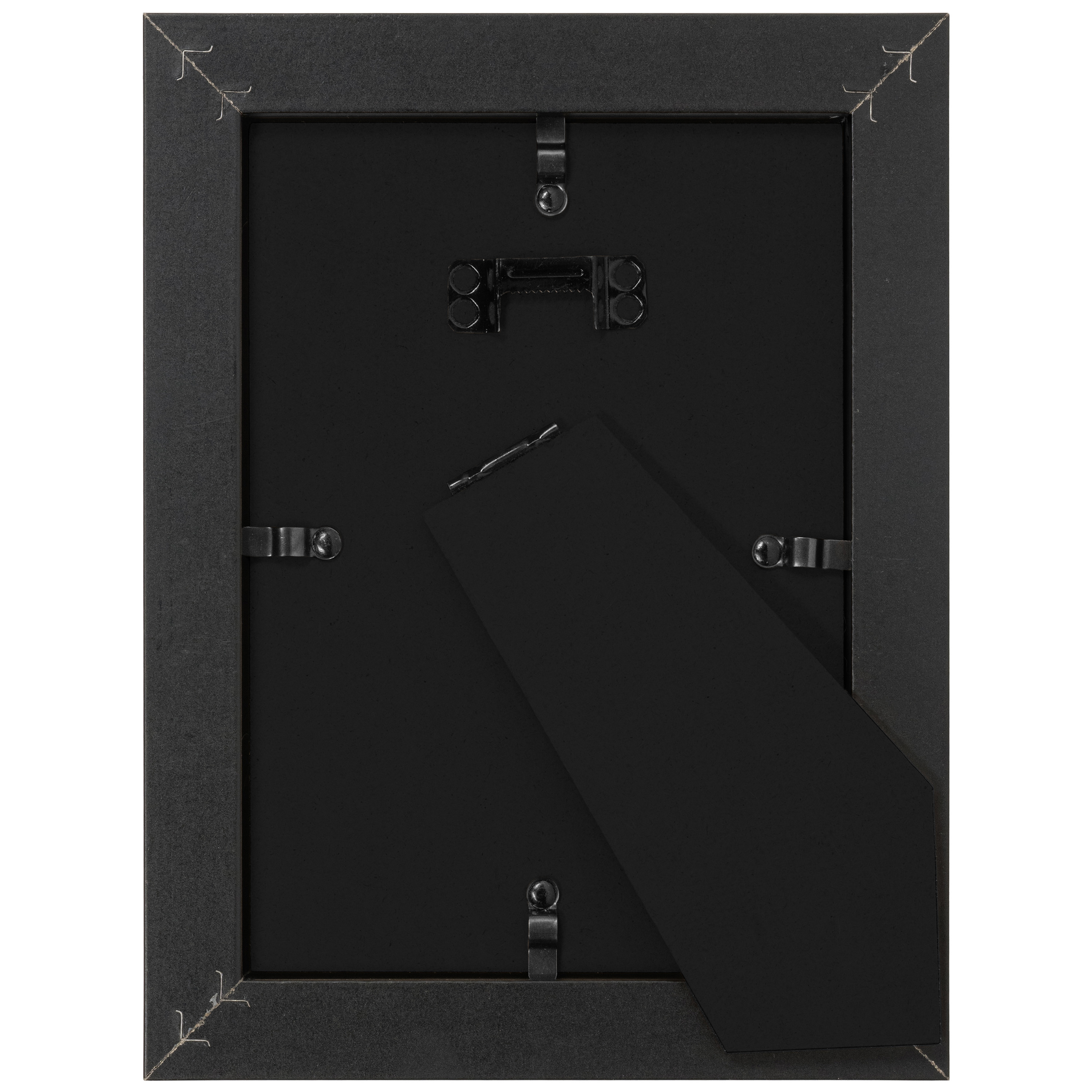 Elevate your home decor effortlessly with the Basics Picture Frame, seamlessly combining quality, functionality, and exceptional savings. Crafted from high-quality MDF composite material, this lightweight frame boasts durability and a satin black laminate wrap that adds a touch of contemporary elegance to any space. The sophisticated glass facing protects and enhances your photos, allowing your memories to shine through without distortion. What truly sets this frame apart is its flexibility in display options, featuring an easy-mount wall hanger for vertical hanging and a fold-out easel stand for both vertical and horizontal positioning. Whether on a table, shelf, mantel, or wall, this chic, minimalist frame effortlessly complements various decor styles with a 1.125" moulding width. Secure swing clips ensure your artwork stays in place, offering peace of mind and hassle-free display in the kitchen, living room, or office. Embrace the essence of modern decor and create lasting impressions with the Basics Picture Frame, where style meets convenience.