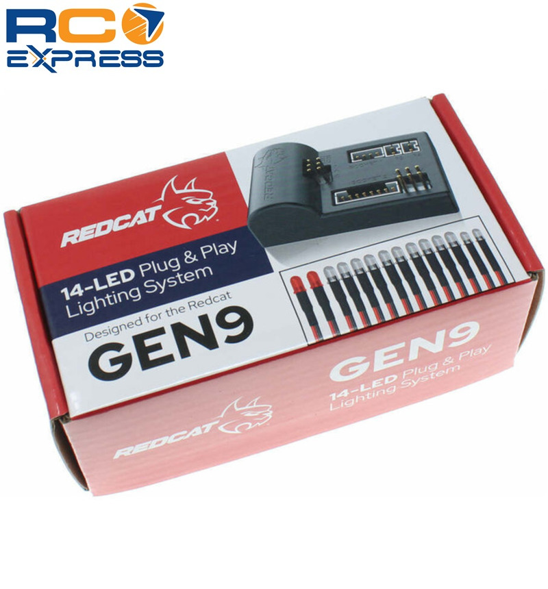 The Gen9 light kit is made specifically for the Redcat Gen9 with Scout 800 Body. Fully waterproof with 14 total LED's. 2 Red 5mm brake lights, 10 white 5mm lights (headlights, reverse lights & rock lights), 2 white 3mm lights for the dash. Features include: Wire length tailored specifically for the Gen9 Scale brake light function Scale reverse light function Single wire for main body disconnect Fully waterproof
