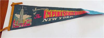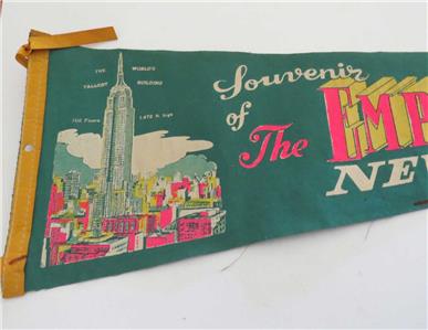 VINTAGE 1960S NEW YORK EMPIRE STATE BUILDING PENNANT RETRO MULTICOLOR 26" SCARCE, good condition with light creases.